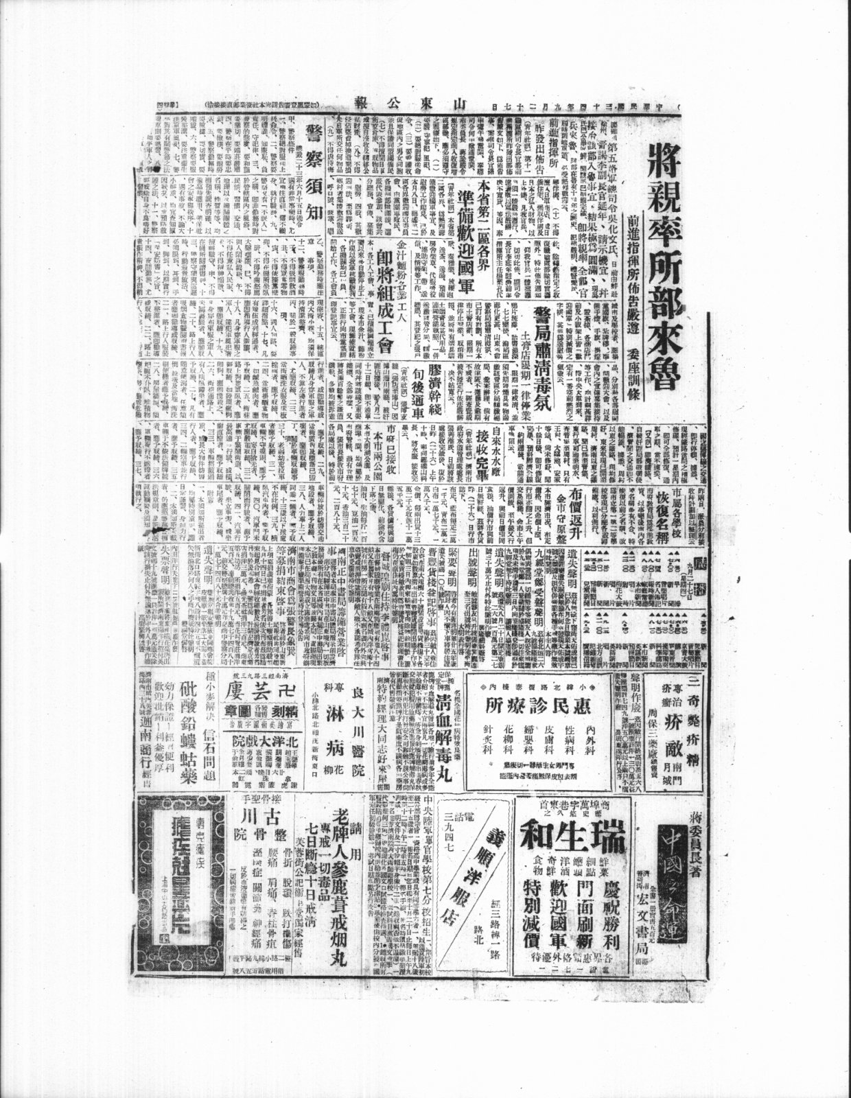 第五峰軍總司合贝化文氏、日前由鲜X副是官延年、X請示X品、分各落间X大、以及