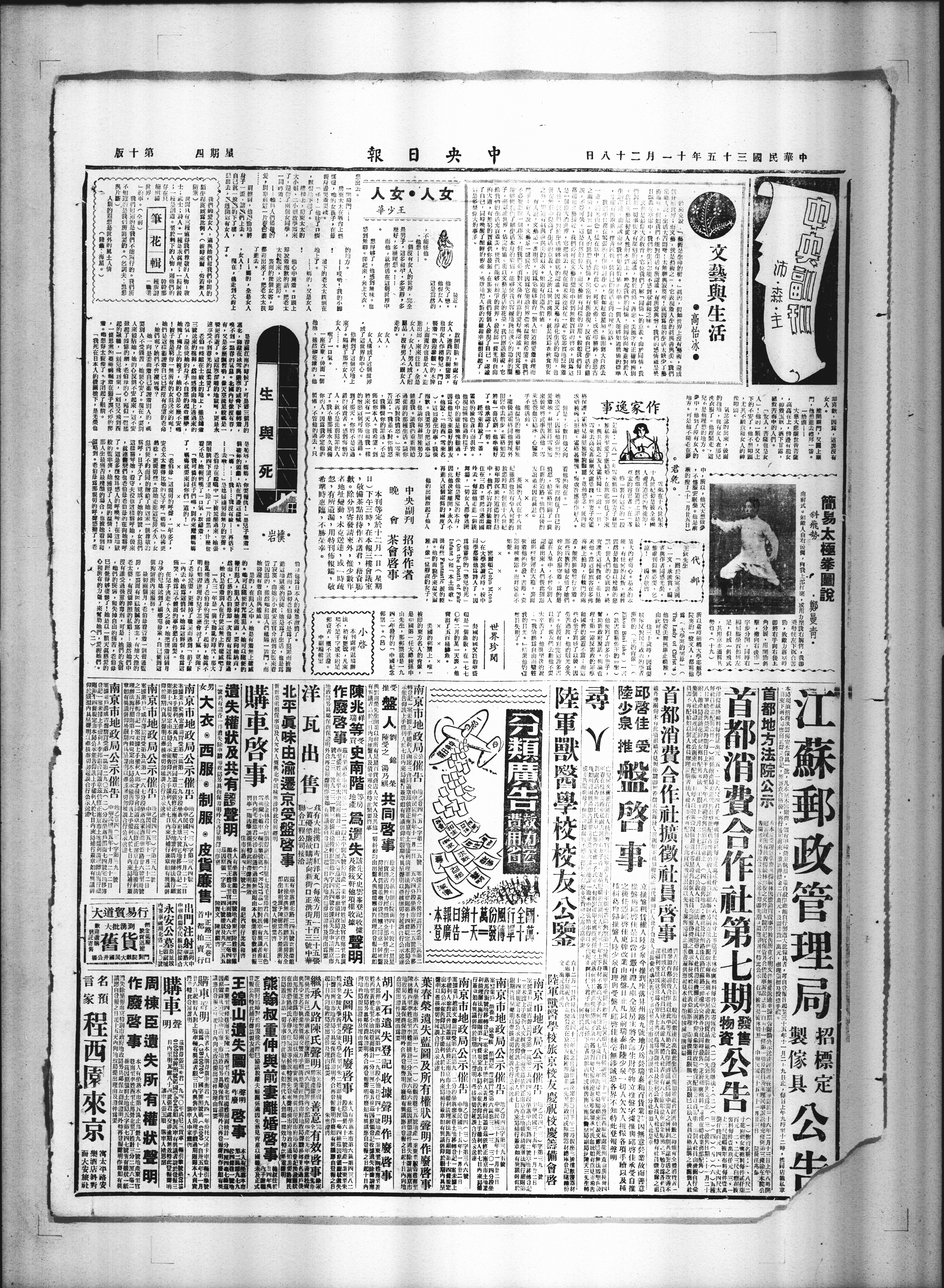 男女大衣·西服·制服·皮货廉售 中正路首都市国货公司 (“首都市国货公司”可能是特定时期名称,从现有信息看可能是店铺名称;因原文字迹等因素,部分内容理解可能存在一定偏差)