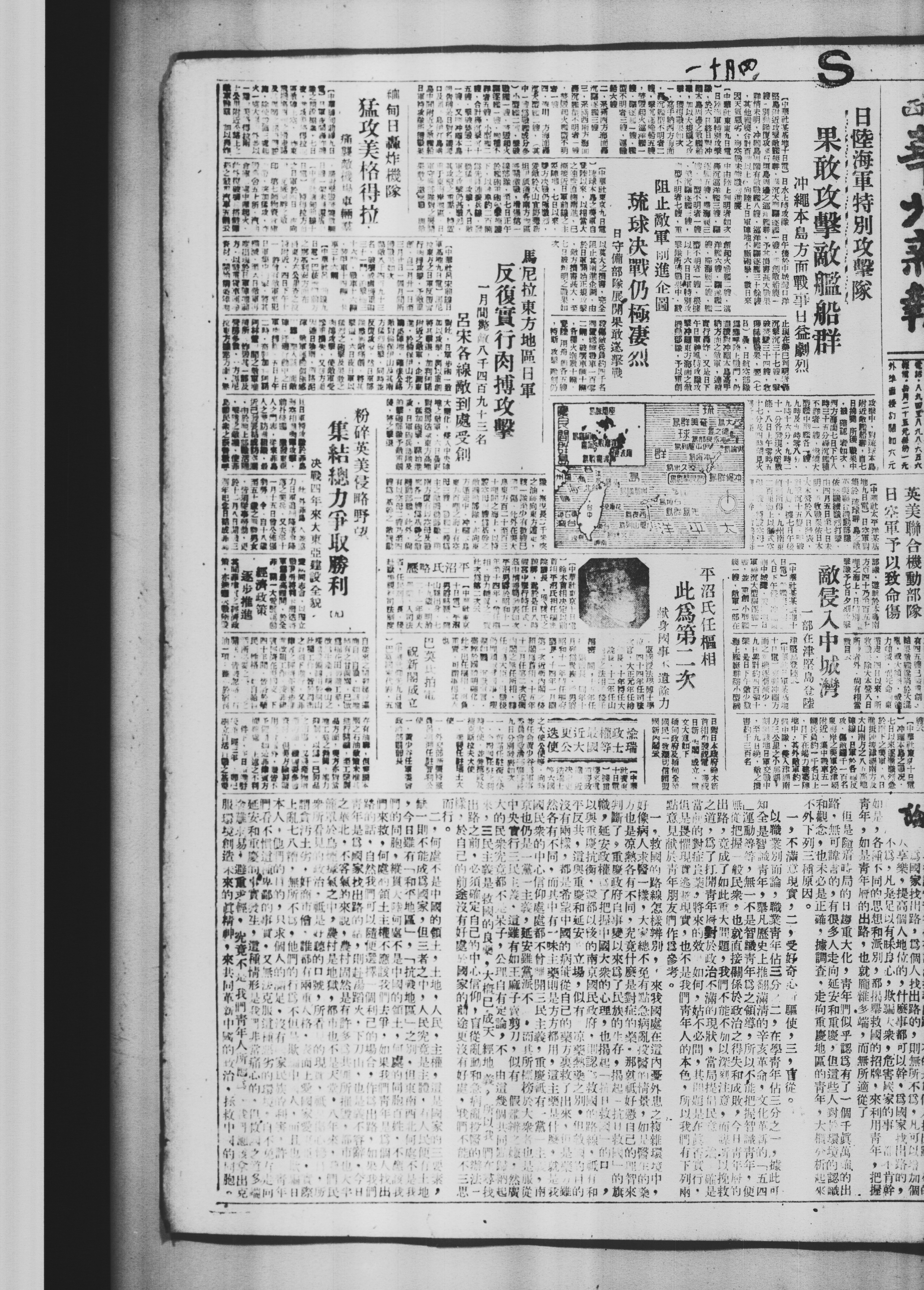 敌侵入中城湾 一部在津坚岛登陆