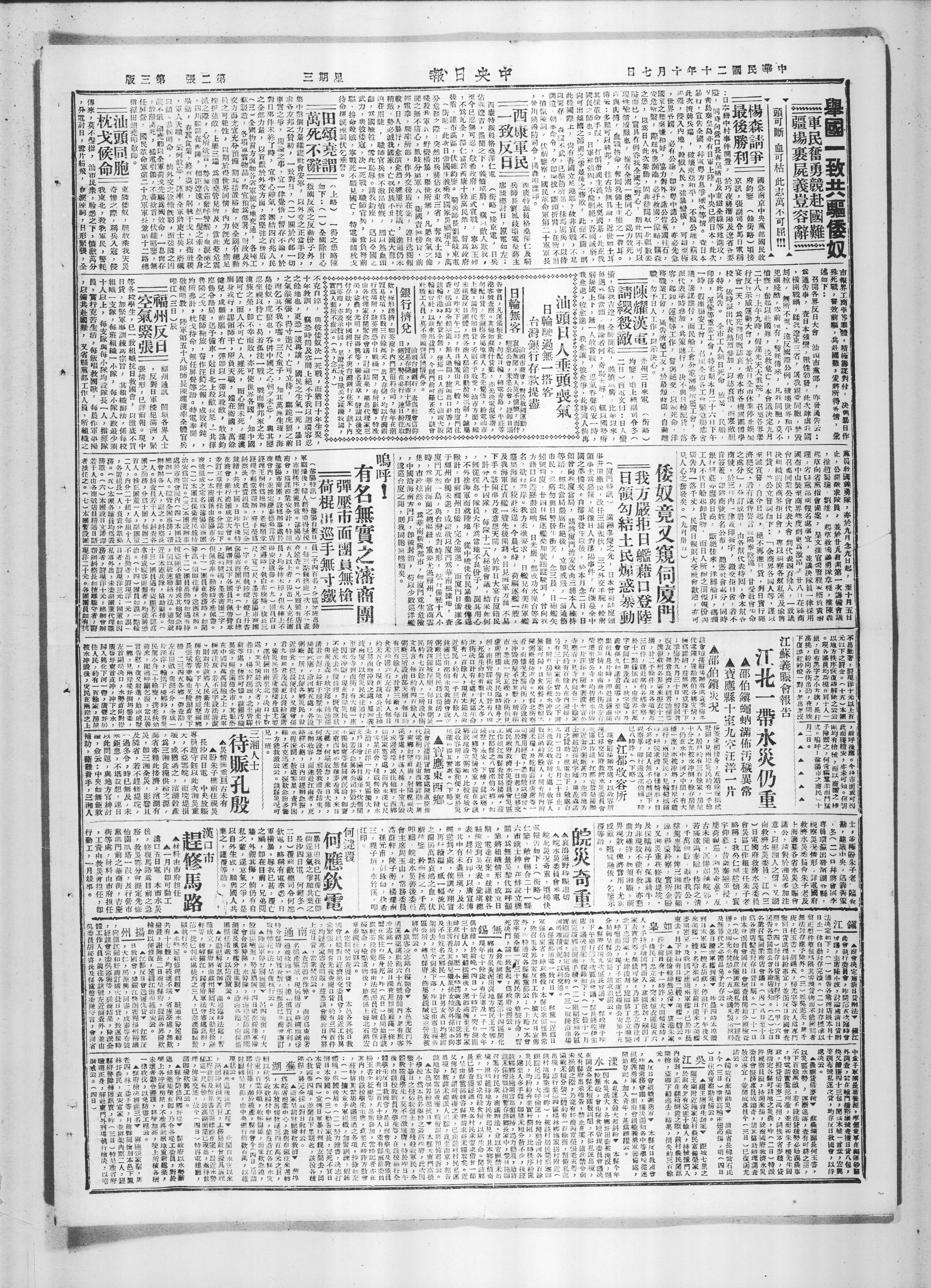 举国一致共驱倭奴 军民奋勇竞赴国难 疆场裹屍义岂容辞