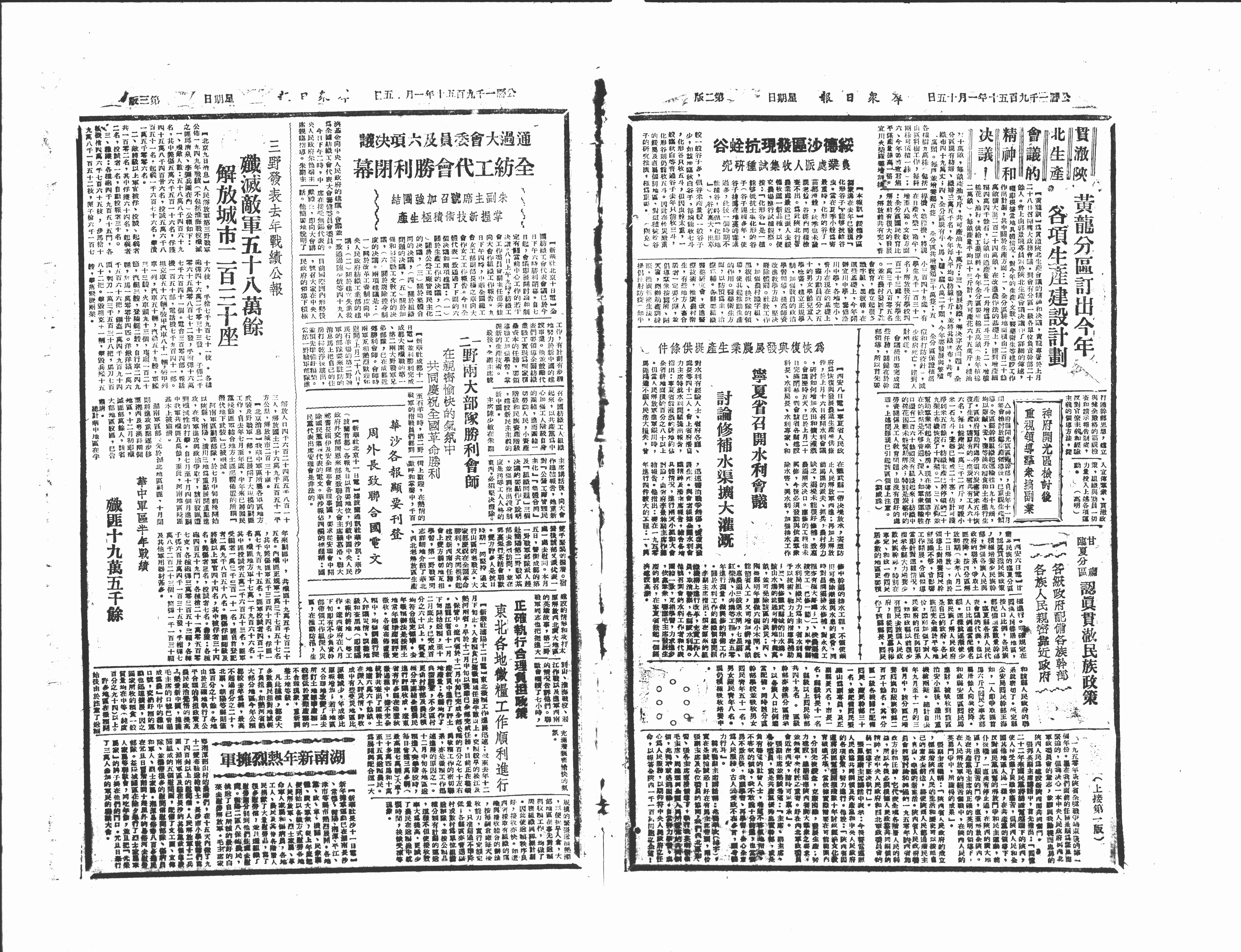 一二野两大部队胜利会师在亲密愉快的气氛中共同庆祝全国革命胜利
