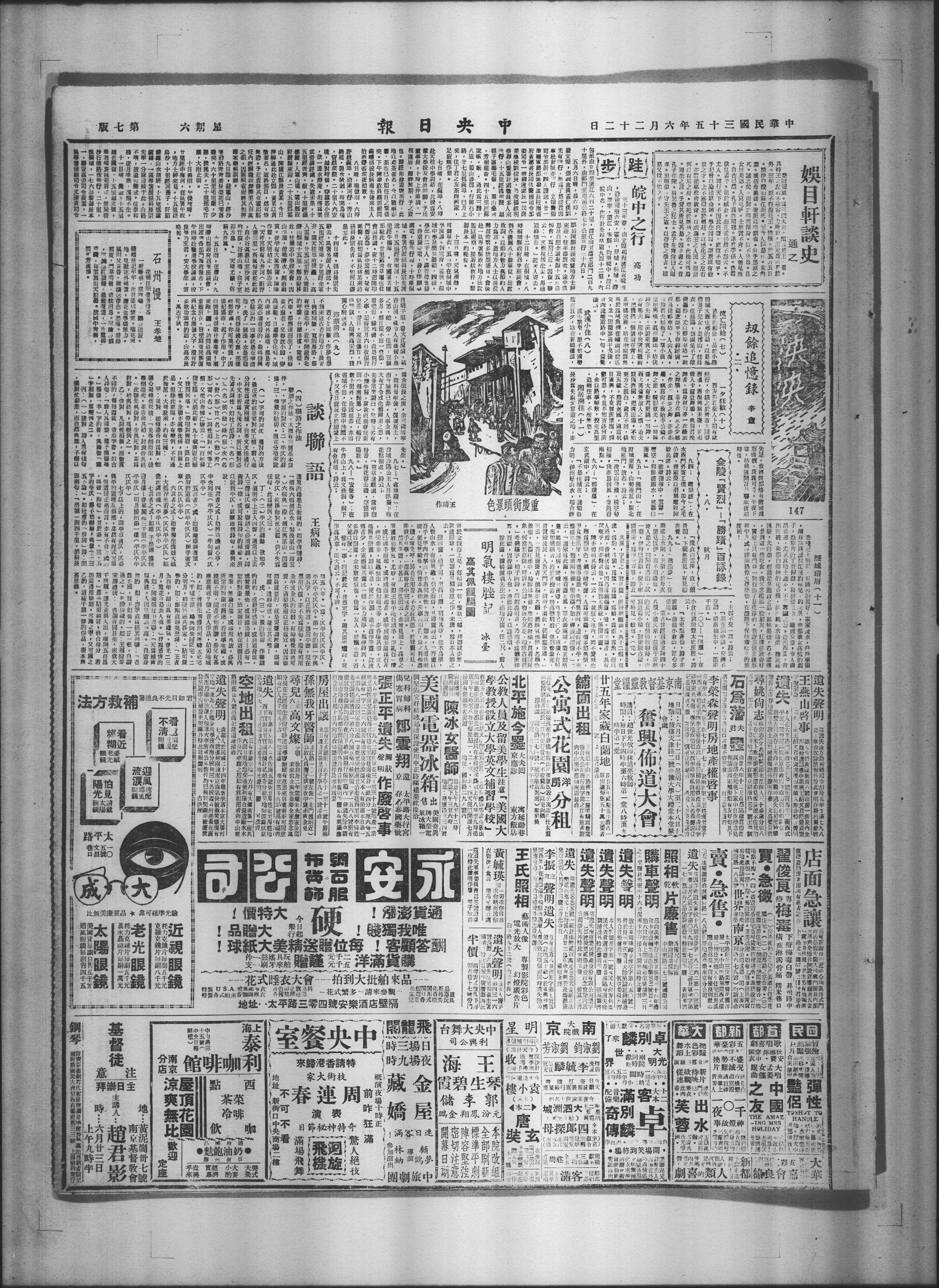 吾友熊君树人ト期有欧州行,余饯之于靑市大同春酒,酒酣兴犹未盛,分相偕入卡尔登舞场,与照君挽舞者,为身材匀渟一衣绿之舞,并介衣缟系之少妇,伴余 步之舞,亦步亦趋,窃喜尚不致贻羊公鹤不舞之羞,鬓影钗光,一时称盛,大有动君更跳一舞,西上英伦无故人之慨,迨夫灯烟酒阑,把湾出场,不知东方之既白,岁月不居,倏及五载,熊君返国,适当抗日军兴,不克展所怀抱,抑郁可想,今且不知寄迹何所,余以路事解散,投荒万里,追缅往事,不能无感。湘居溯往
