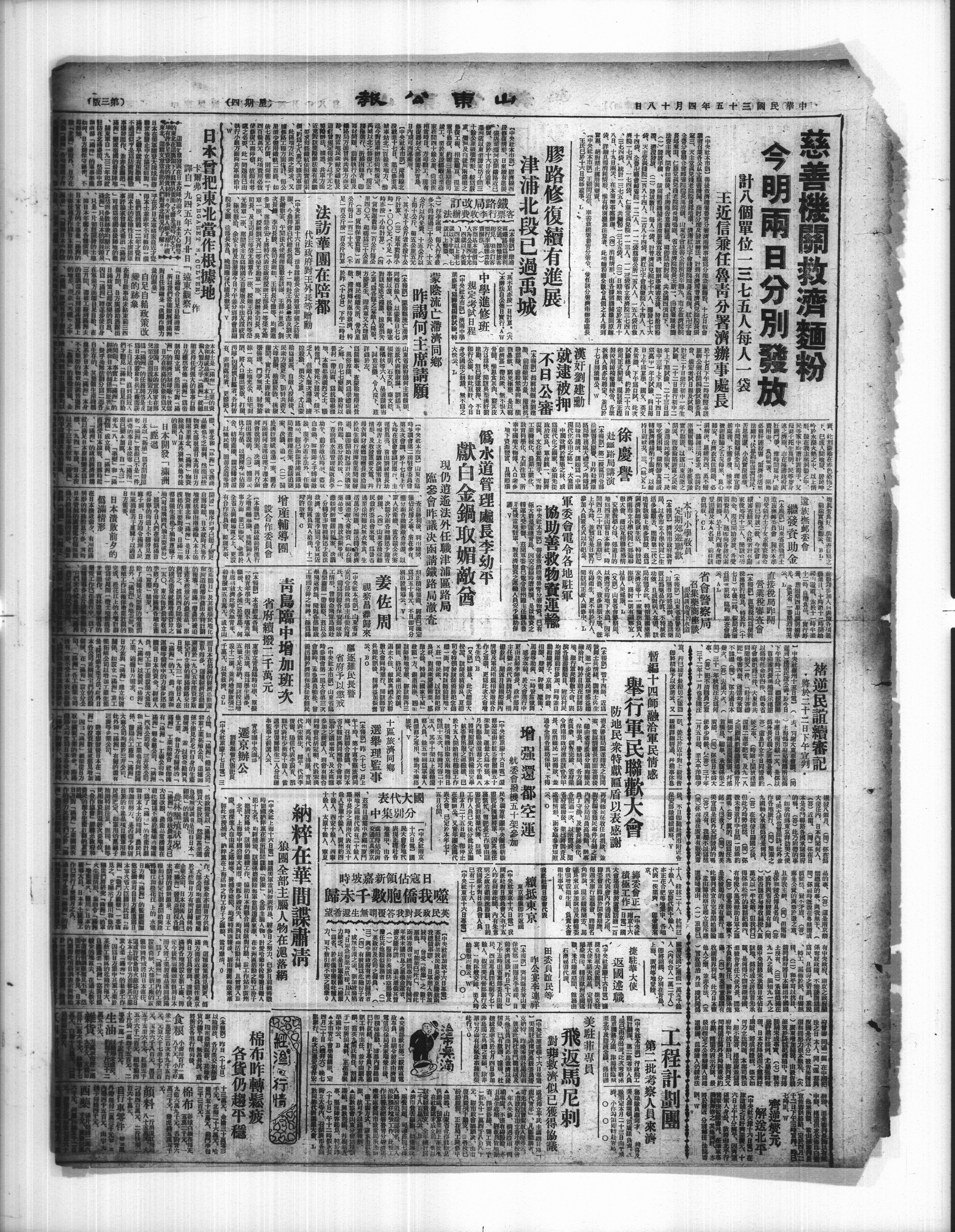 中央社本市部)普後救濟總署穆寄分署物费,已有