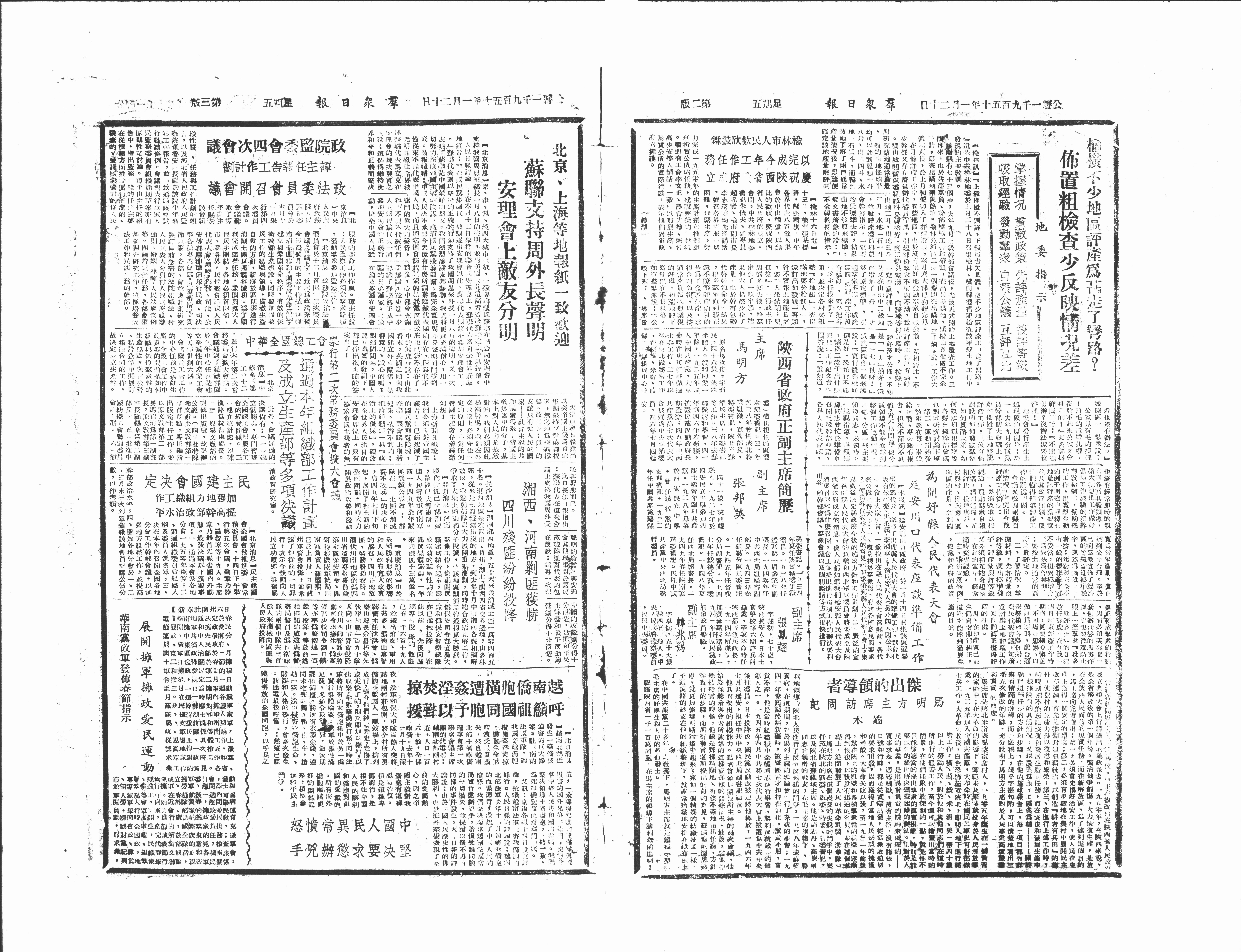 I木歌】延安川口隔政府,於一月十召集該區還