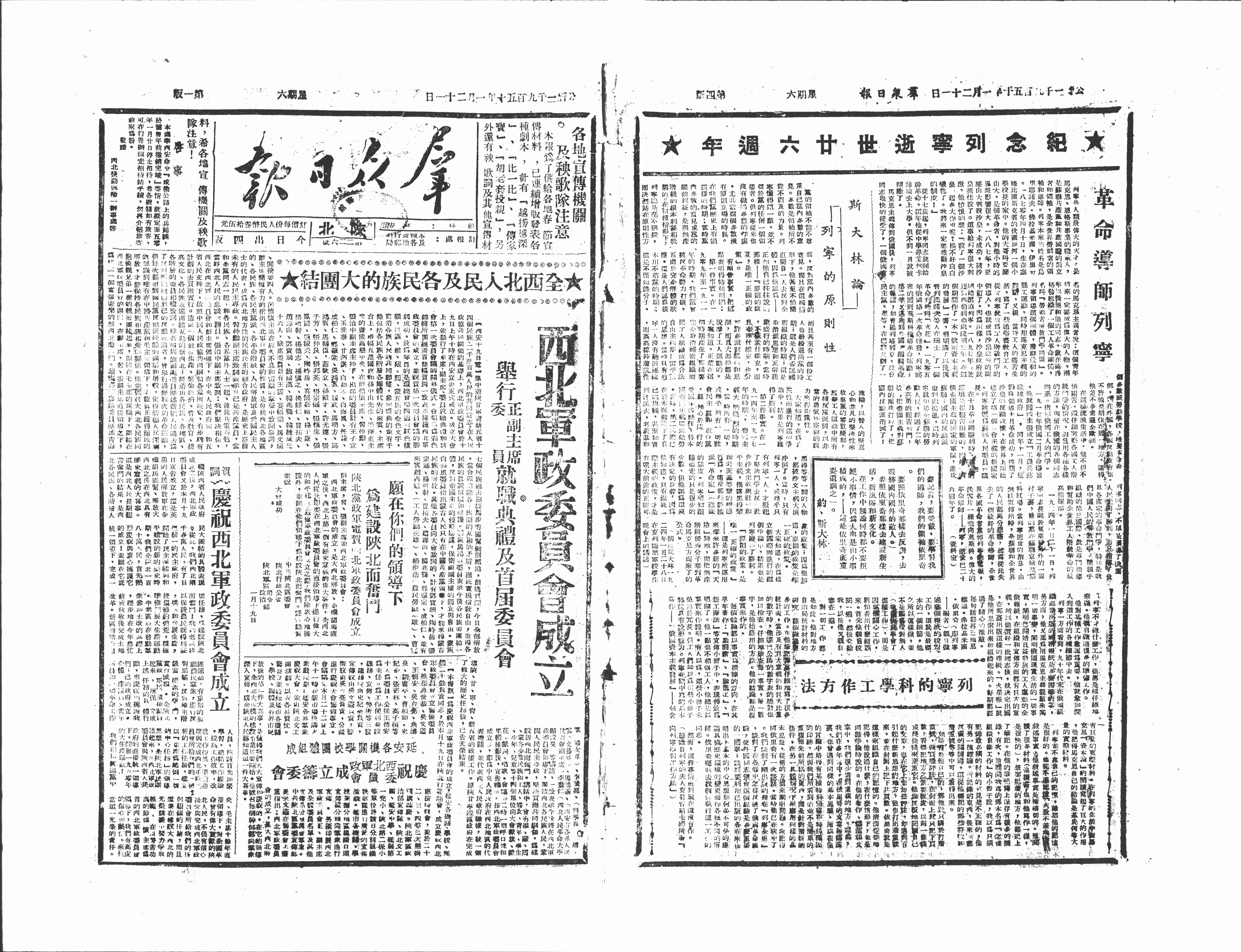 贺词庆祝西北军政委员会成立