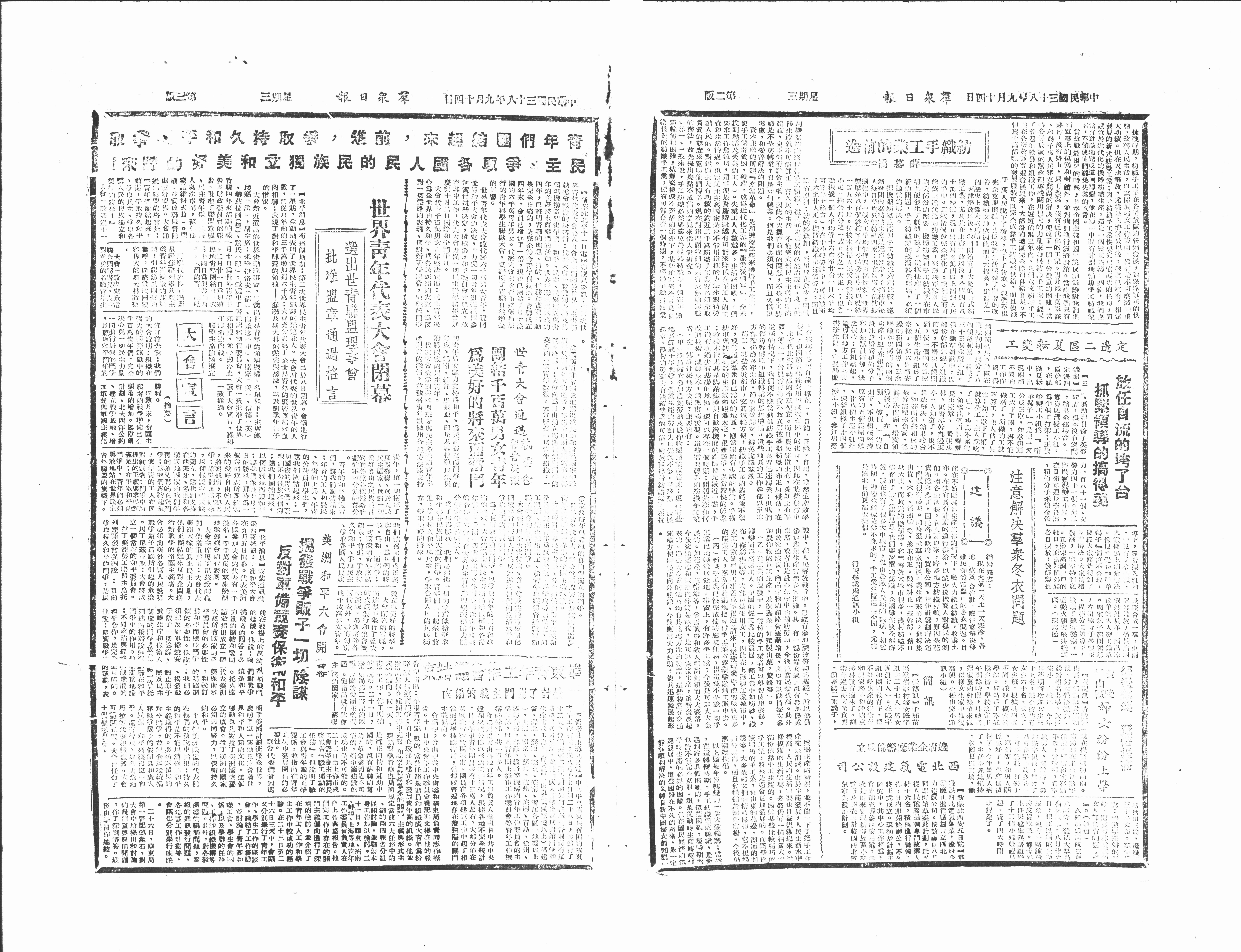 世青大会通过团结千百万男女青年为美好的将来而奋斗