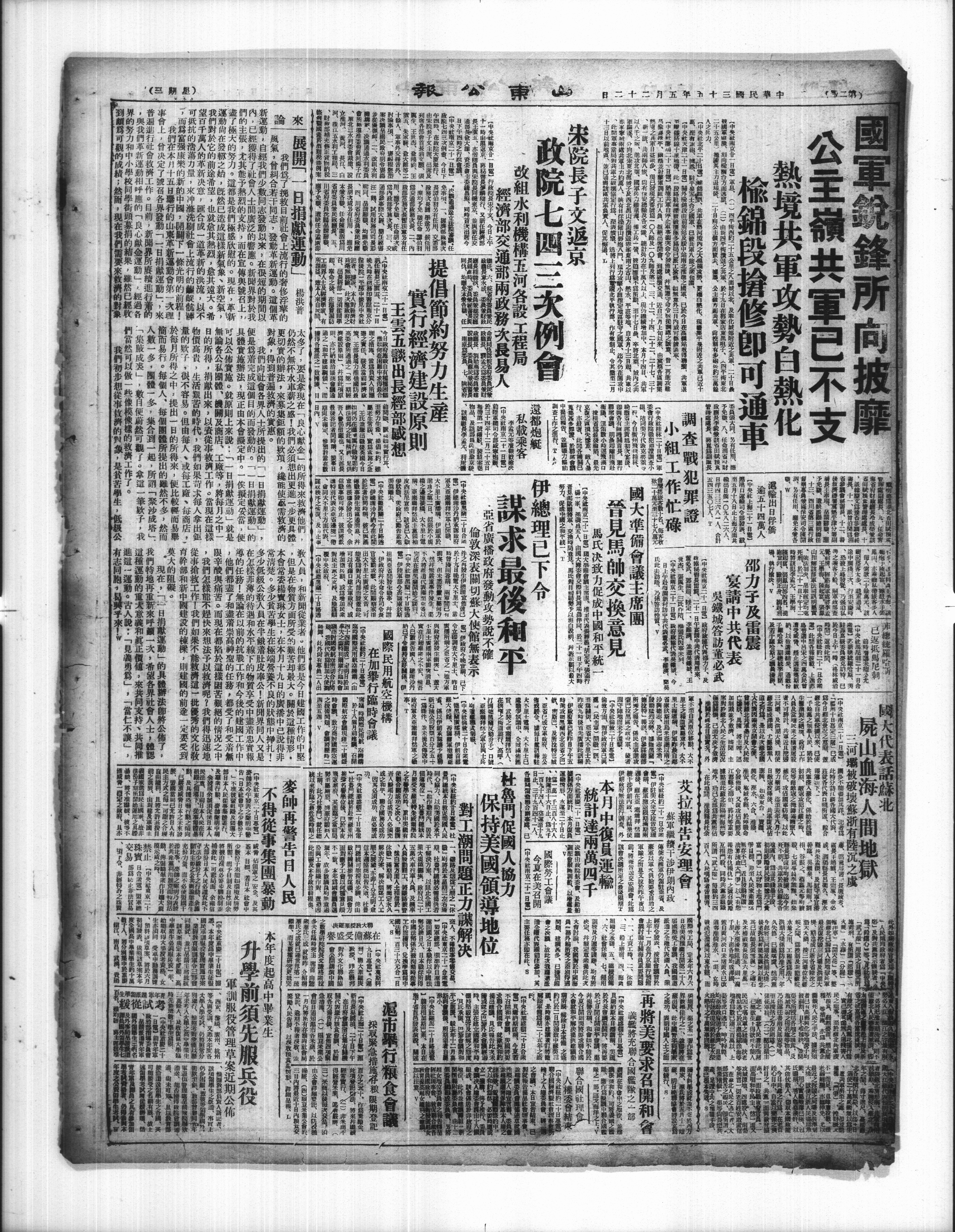 宋院長子文返京