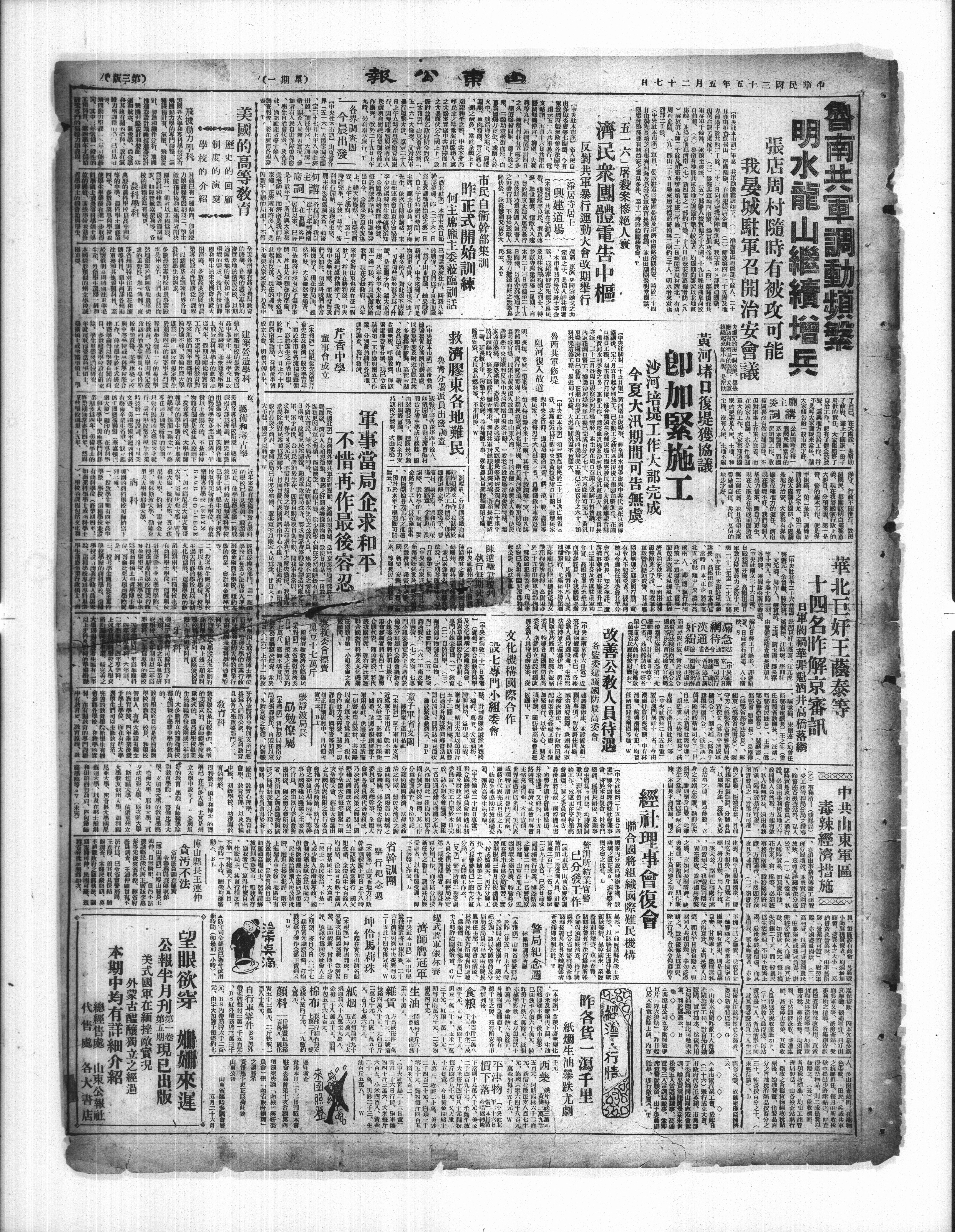 鲁南共军调动類繁 明水龍山缆猜增兵