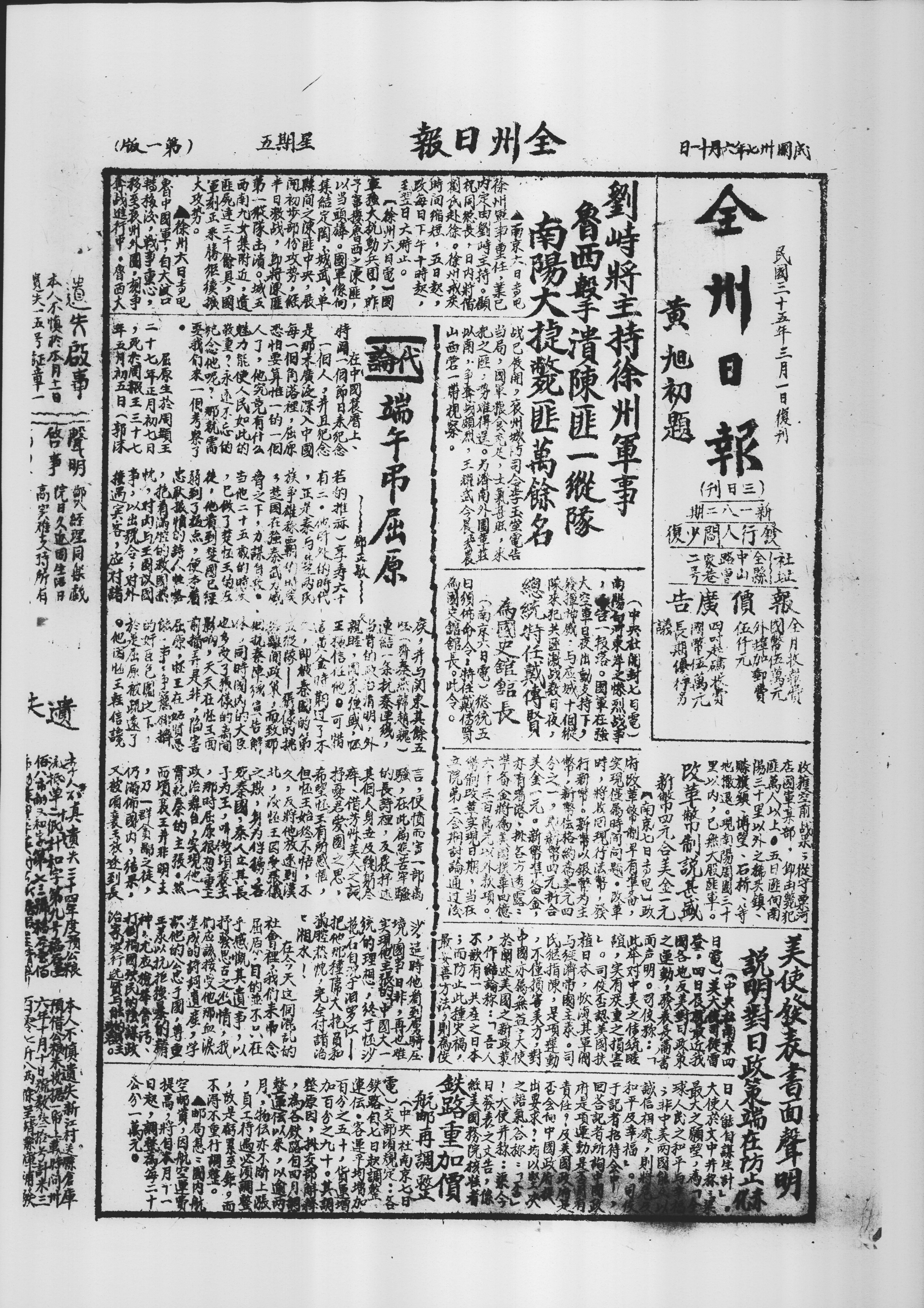 | 报刊名: | 全州日报(第1版) |