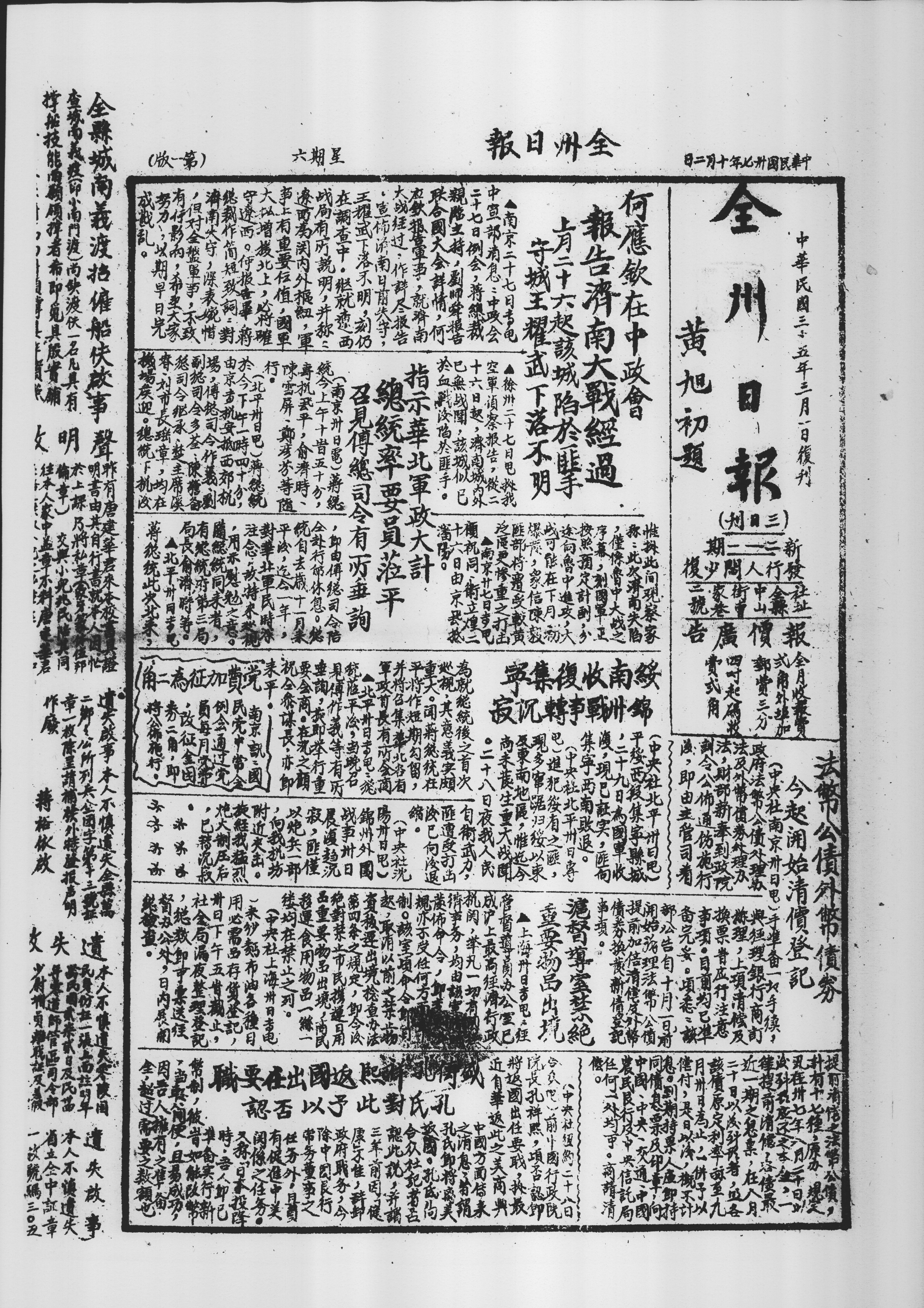 | 报刊名: | 全州日报(第1版) |