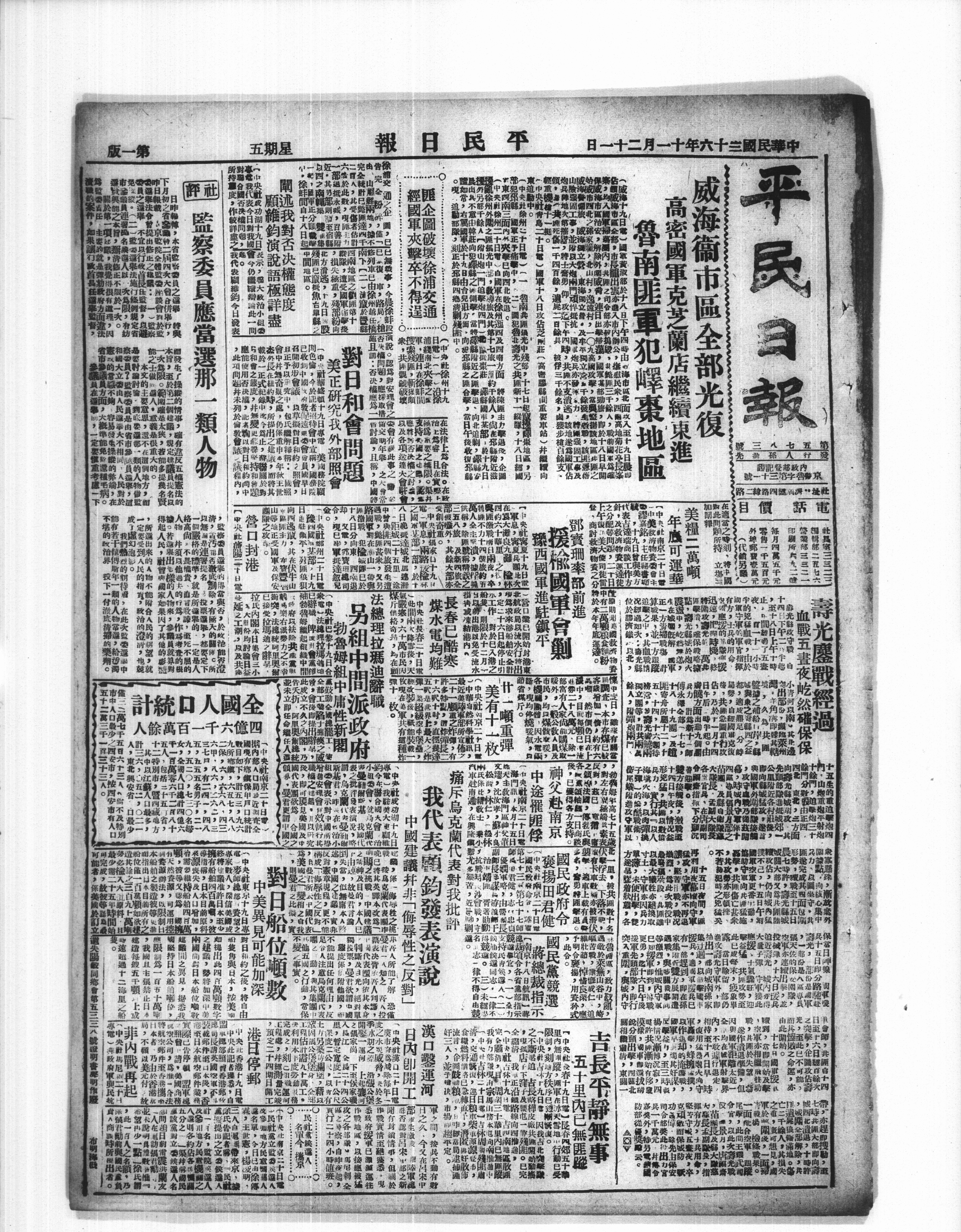 | 报刊名: | 平民日报(第1版) |