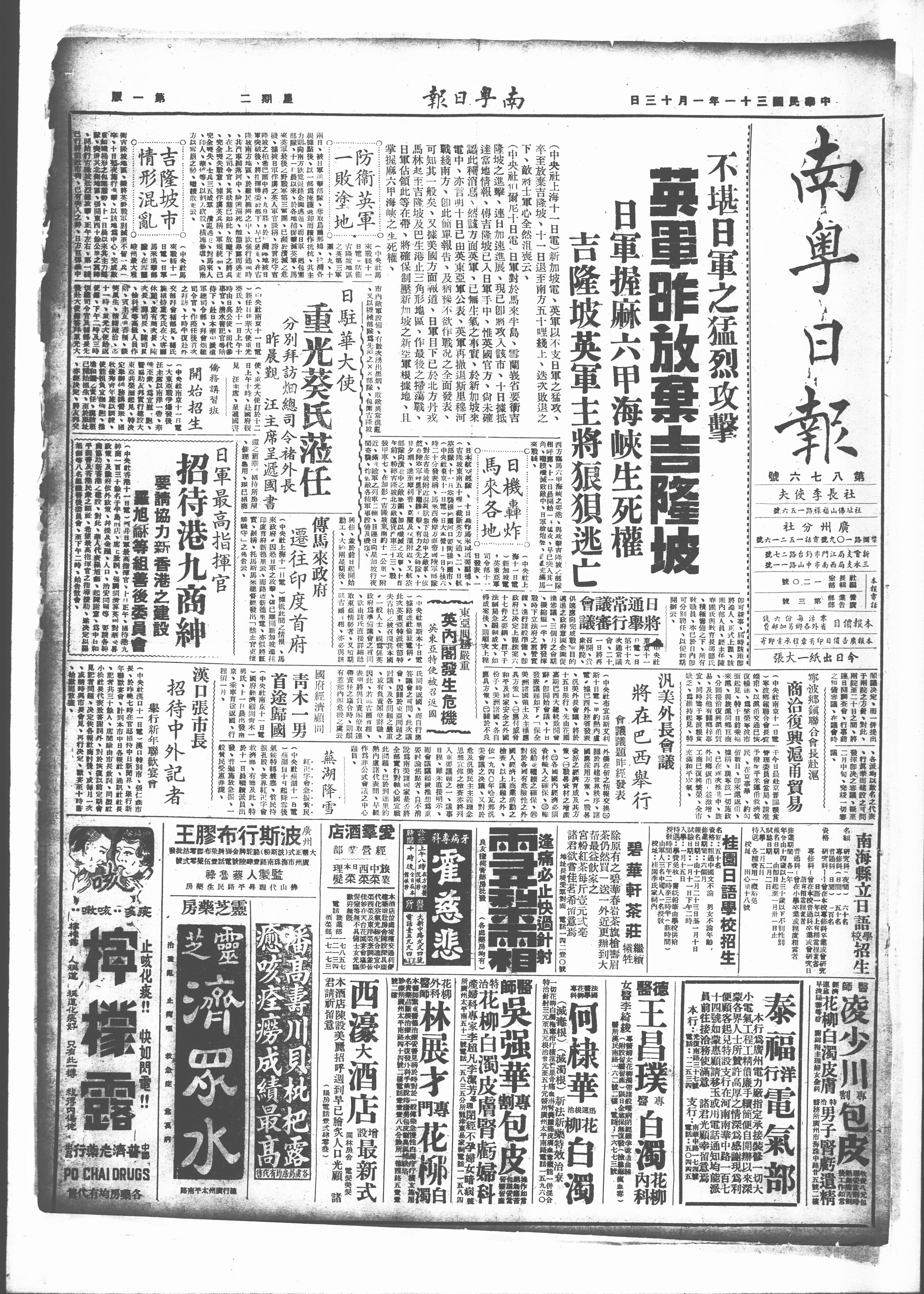 (央社南京十一日電使、光大使訂於十二一還之蓄菲:招待所房屋