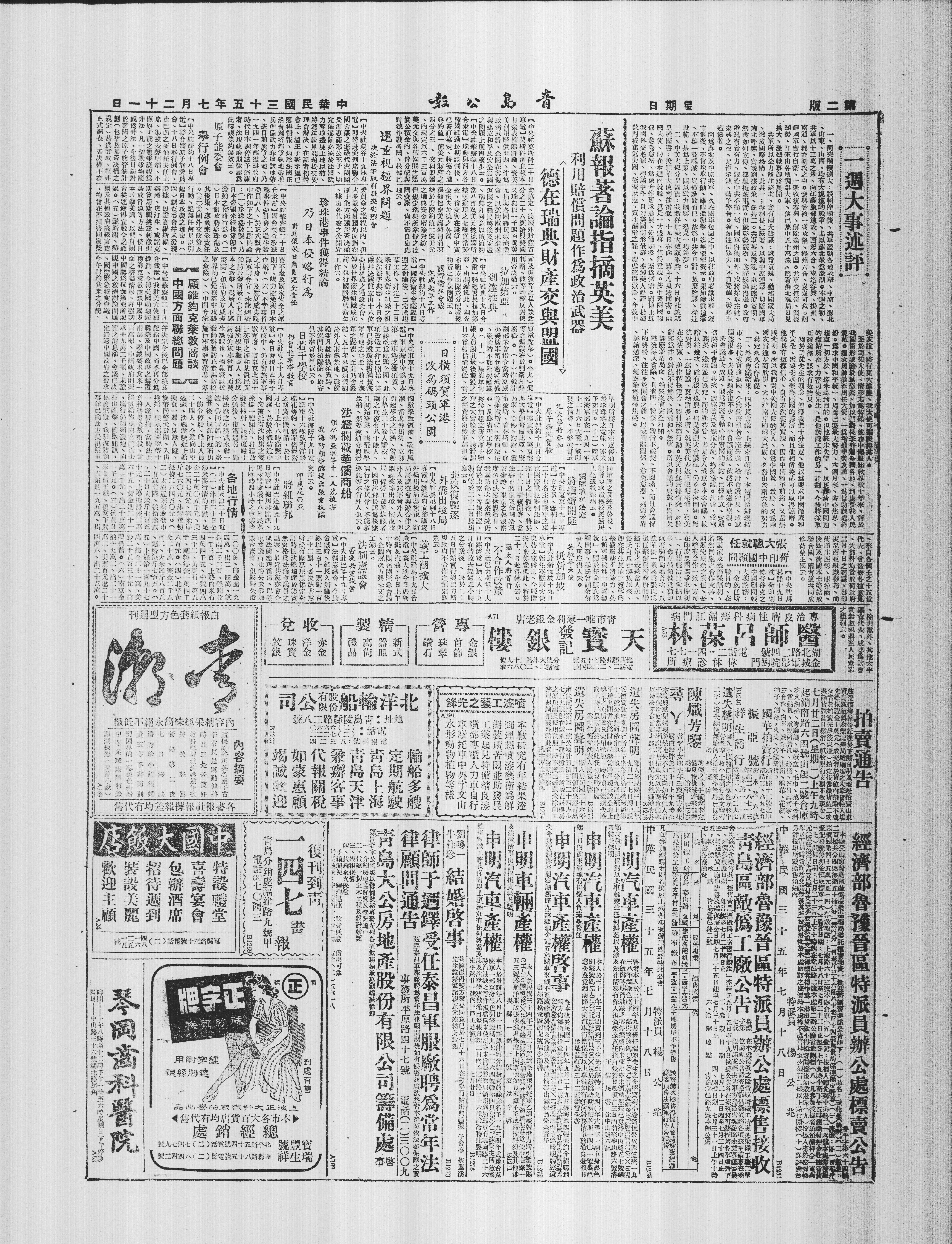 日来金价平稳、粮食下跌、赤金进一九五万、出二〇〇万、饰金进一九四万八、出二〇五万、银两二千二百、银圆枚一千三百、上熟白米每石四万四千五、中熟白米每石四万二千、面粉每袋一万四千六百元。