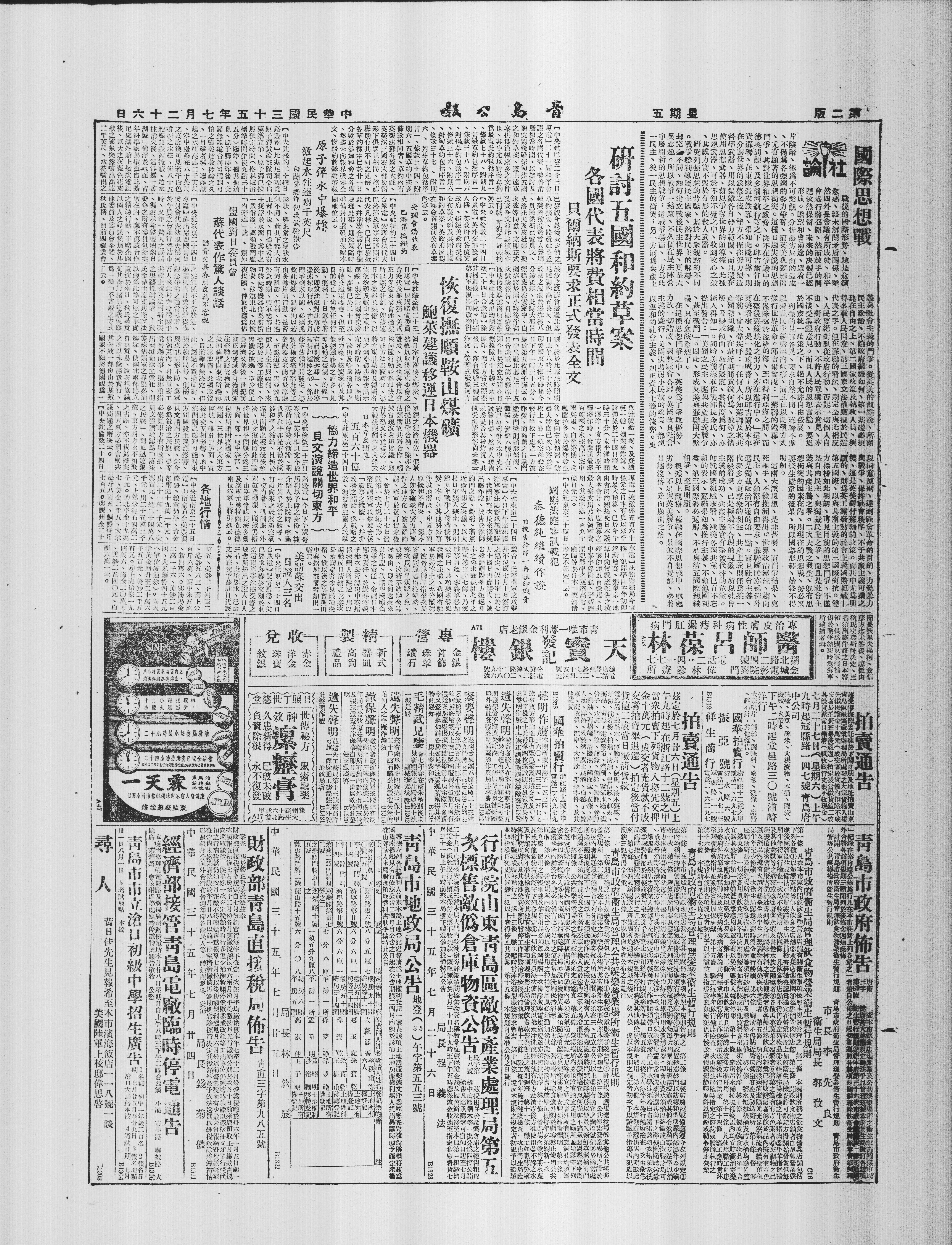【中央社东京二十四日专电】总数达五百六十亿元之日本有史以来平时最大预算,已于今午由吉田内阁提交日本议会本会计。年度预算之最大宗支出乃占领军费用,其数字达一百九十亿日元云。