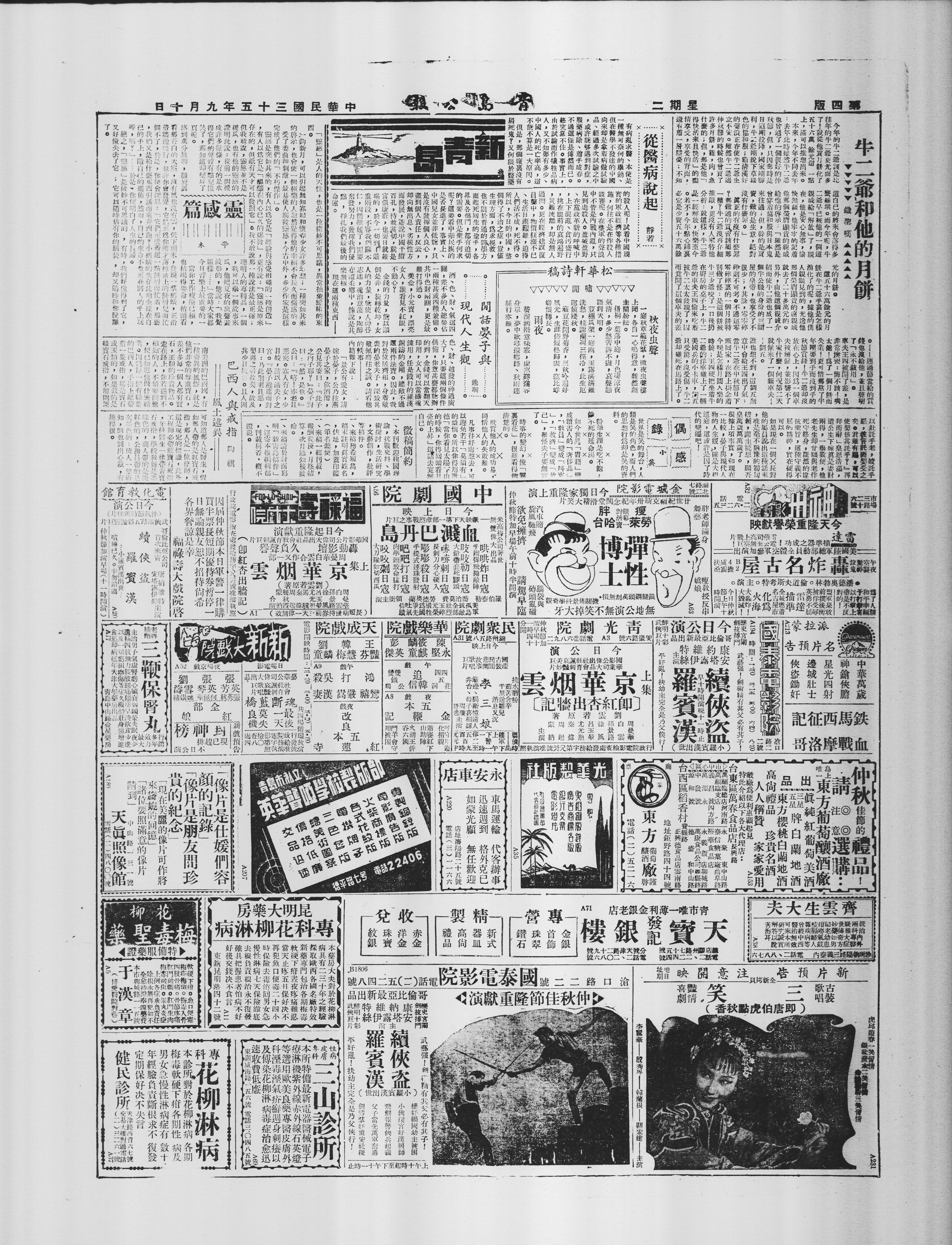 今年的牛二爺該是比往年的牛二爺更 “光” 而多了!就從他買月餅化了五十六萬餘元這一點說來,便可推想出去年此時,雖然牛二爺也曾過了一個不錯的仲秋節,但只因那時是日寇剛投降,國家剛勝利,牛二爺剛脫下草綠色的 “協和服”(滿漢奸的協和服正穿在牛二爺身上,安不安全雖牛二爺自己也 “立不安”)。難道牛二爺從此就無憂無慮了?不然,今年的月餅開銷漲到五十六萬餘元,對比從前他買月餅只花一元的光景,變化可謂巨大。