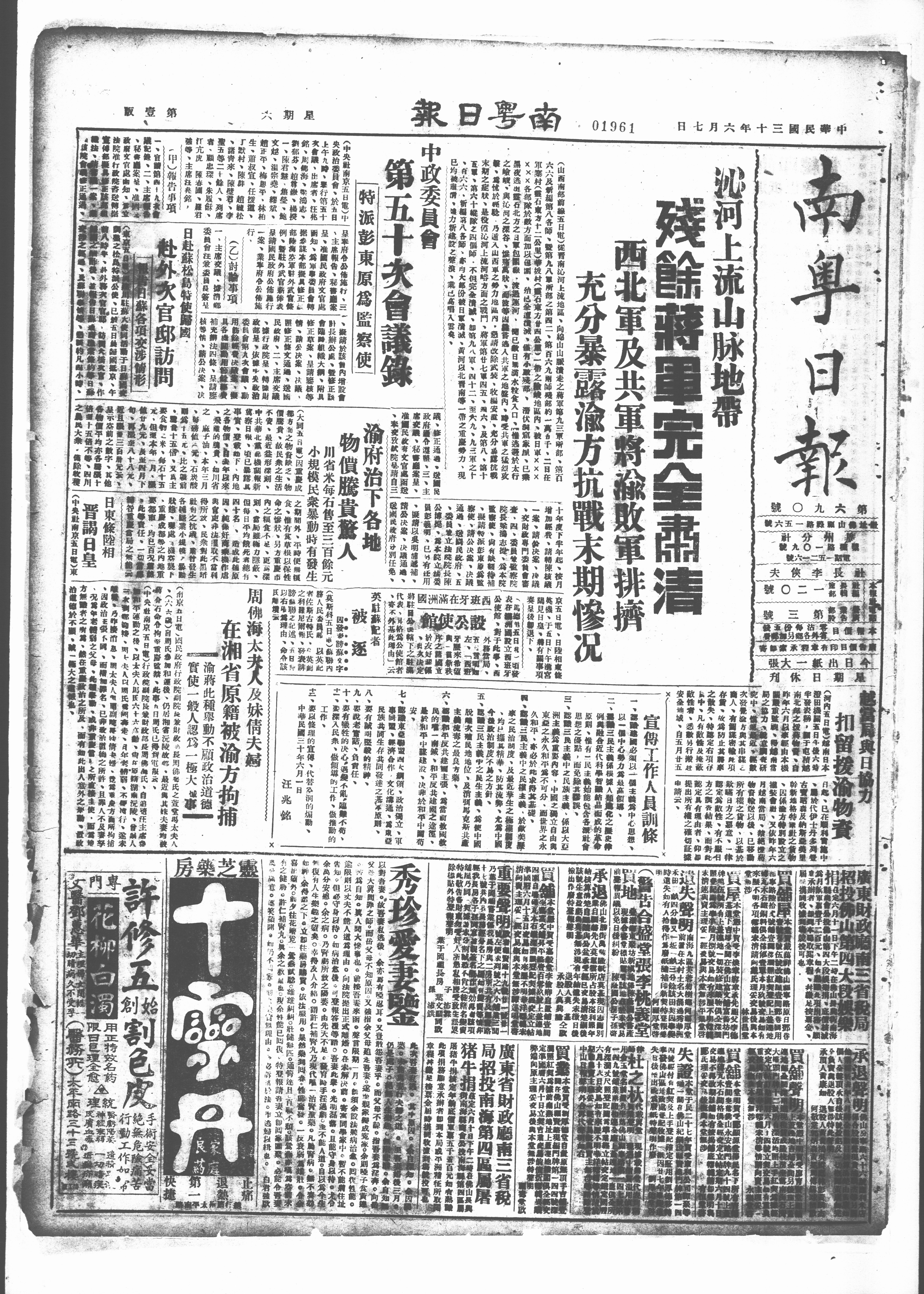 (中央杜南京五日竈行政院副院長兼財政部長周佛烏氏、自追隨王主席