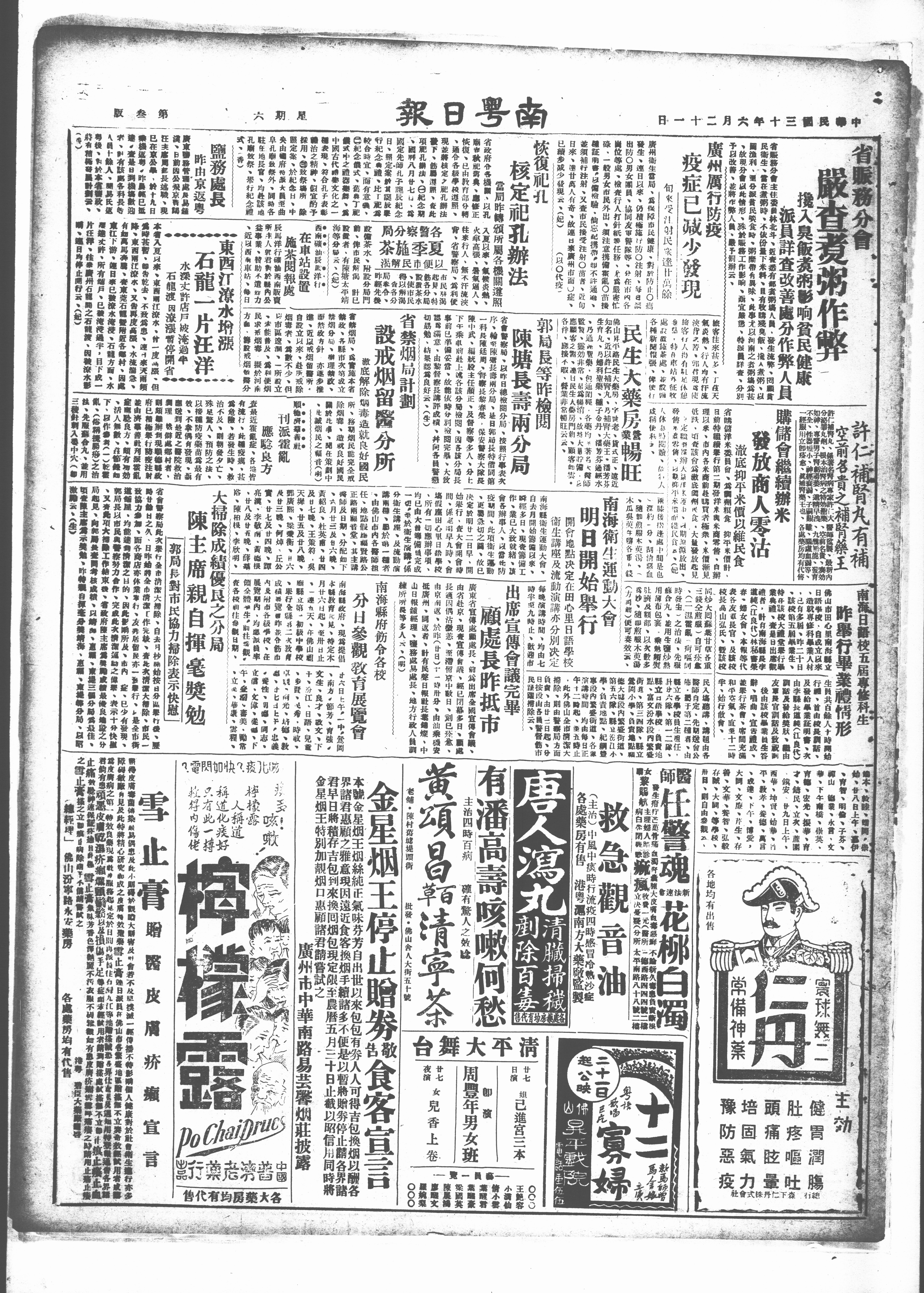 廣東省宜傅處顧處長、前爲出席全國宜傅會、