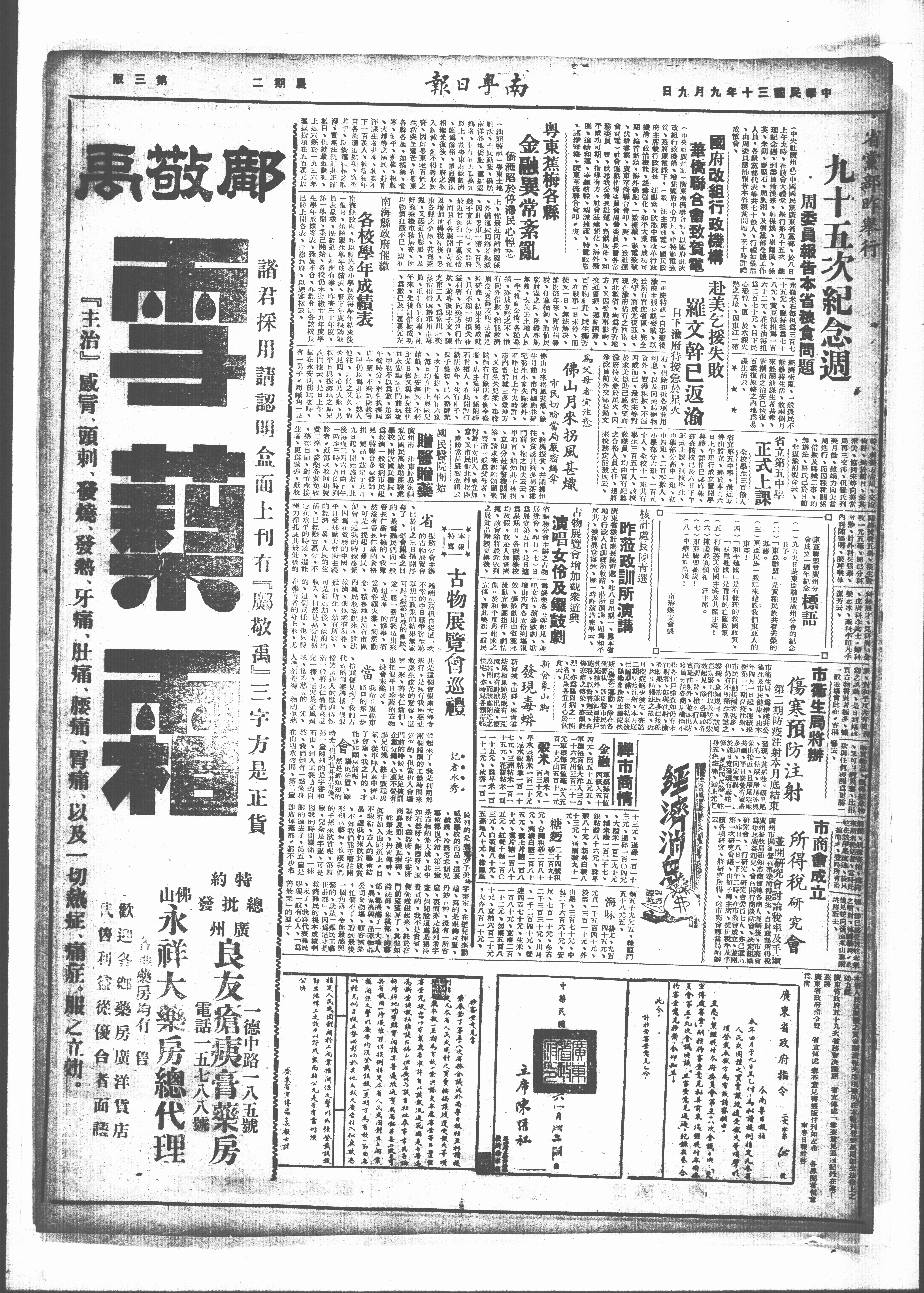 南海縣政府、昨以縣内各小校於每年粘束後