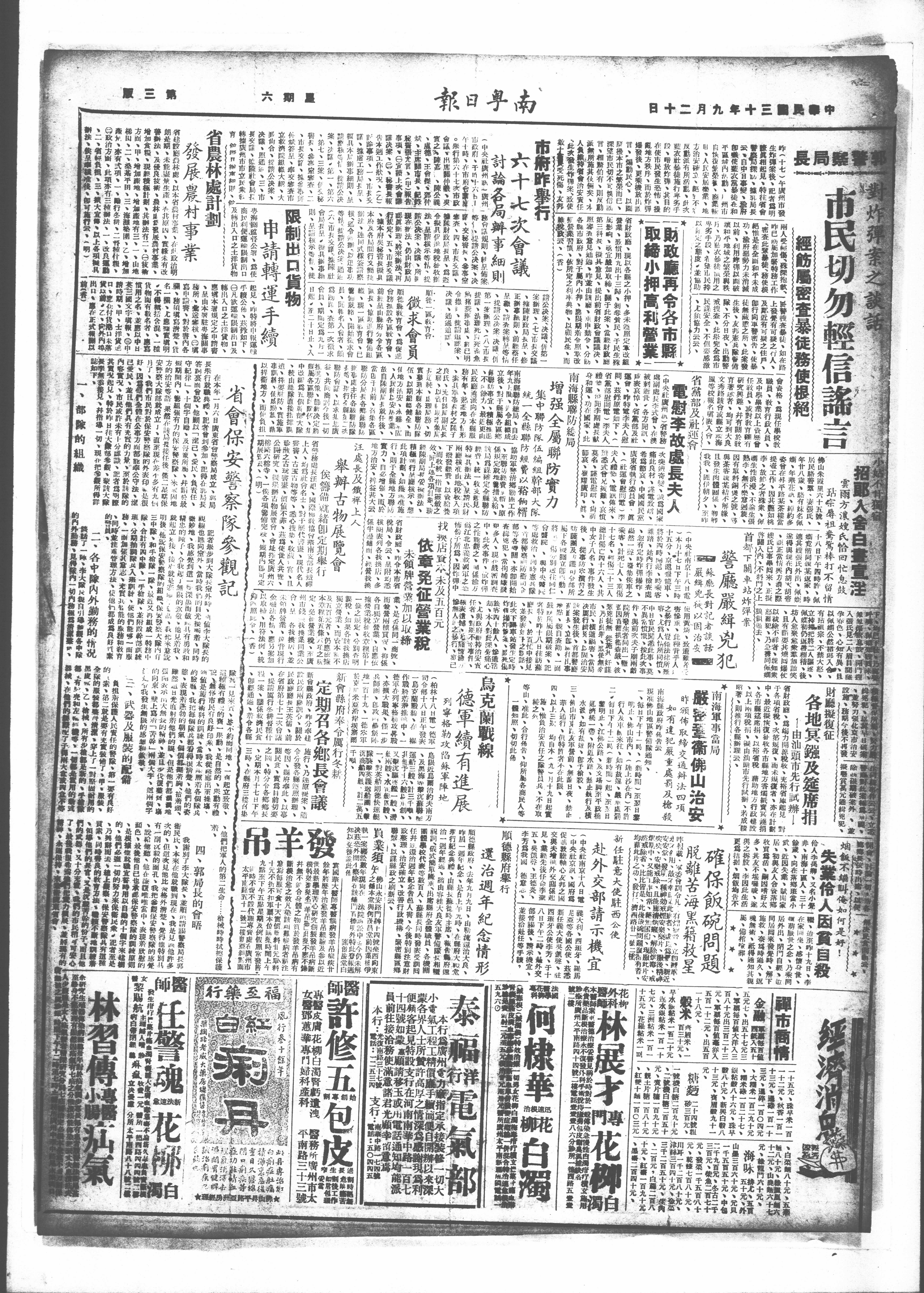在本年一月六日廣東省警察局成立、局