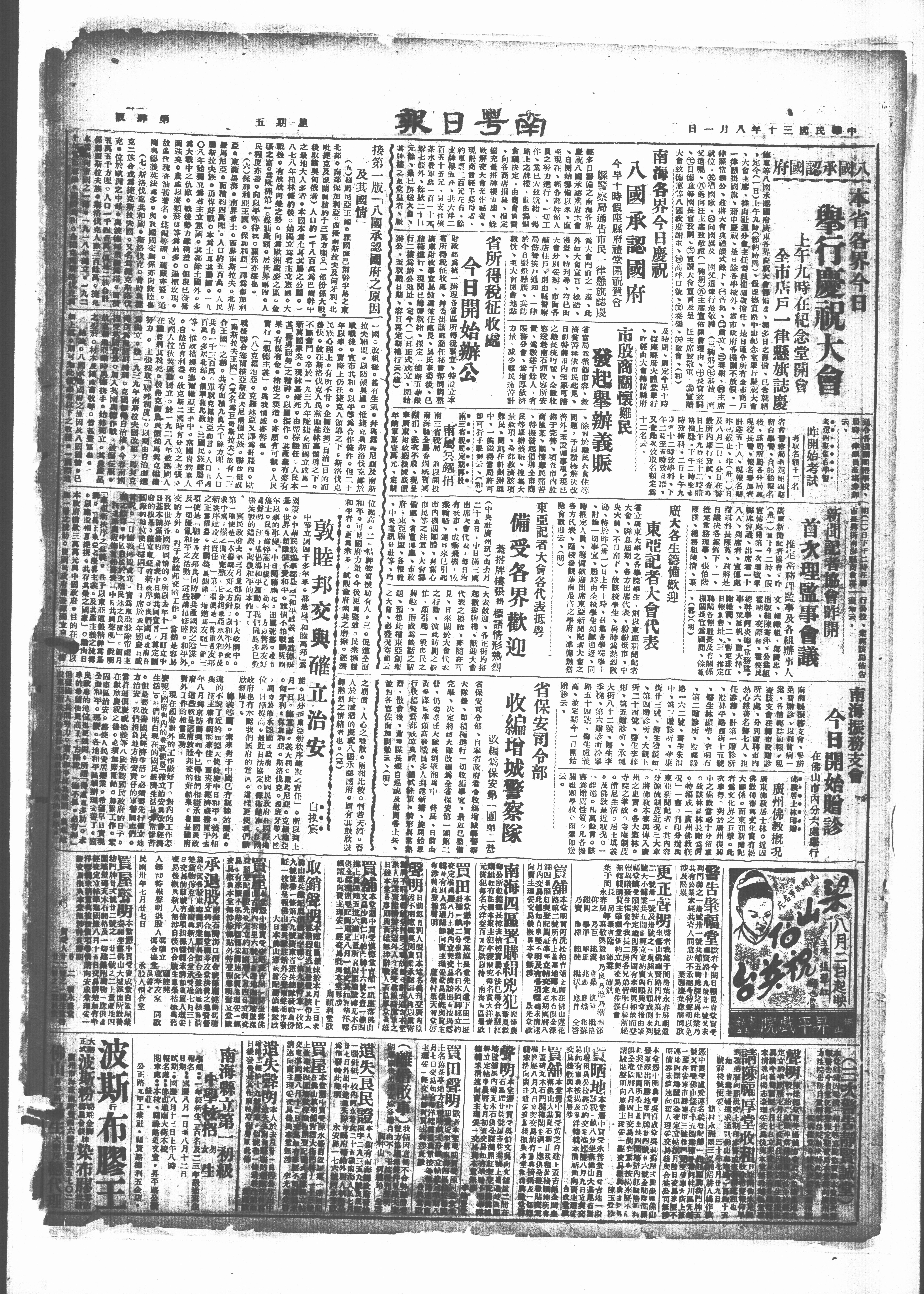 接第一版「八國承認國府之原因 及其國情