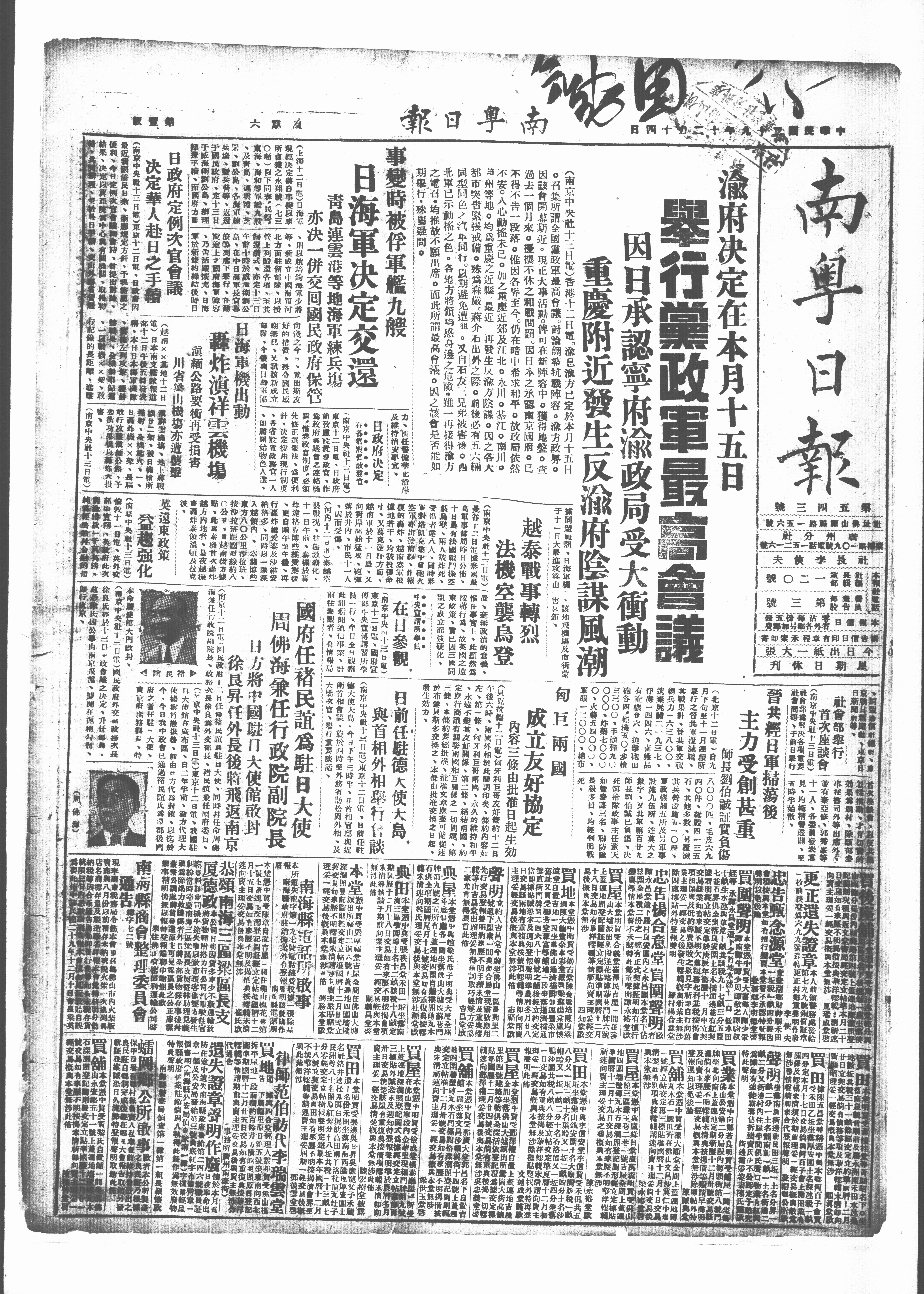 (上海十二日電)日海軍·即以培海軍少將淡之今、竟出斯友