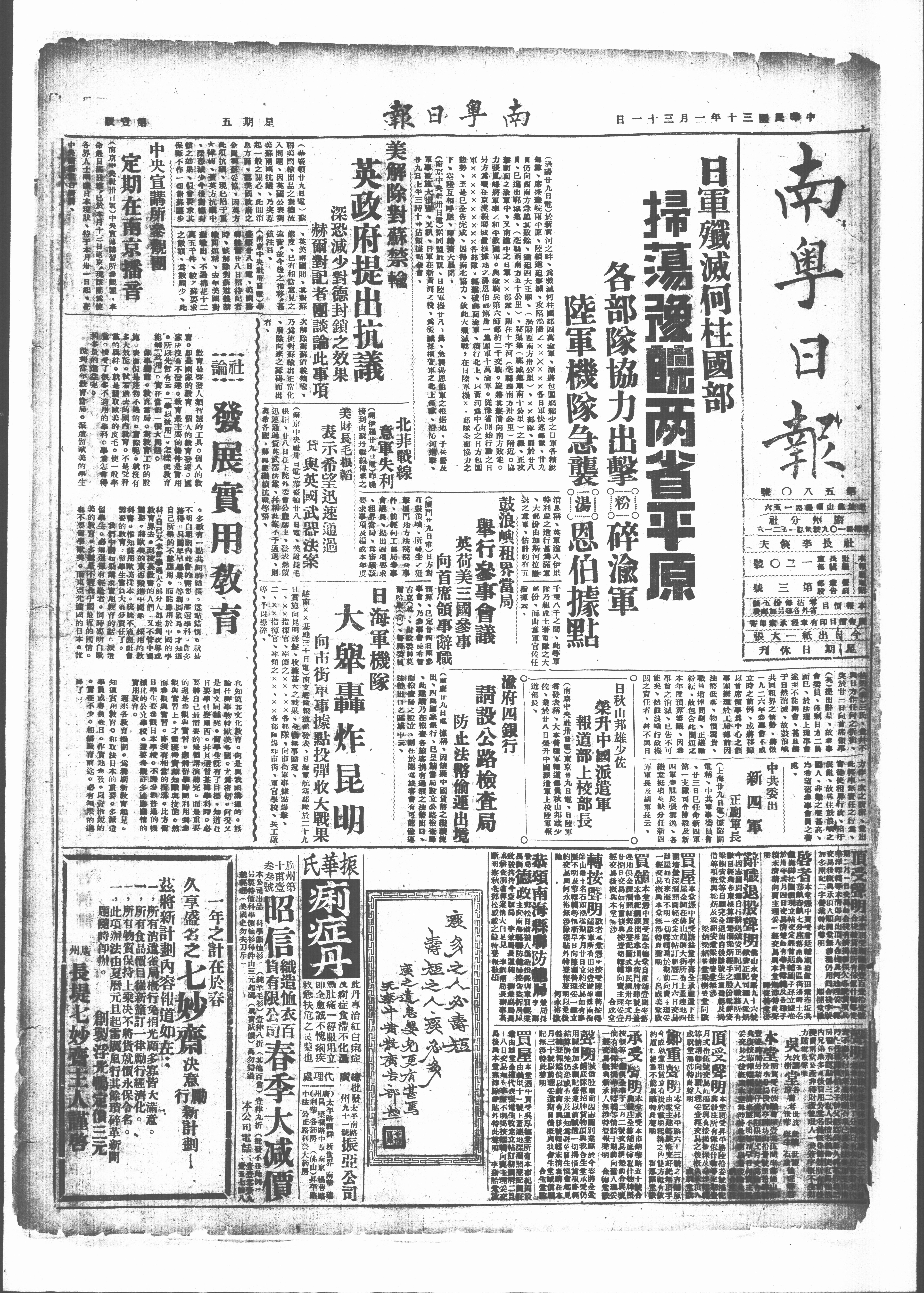 (南京中央社州日里)東京廿九日電、日軍