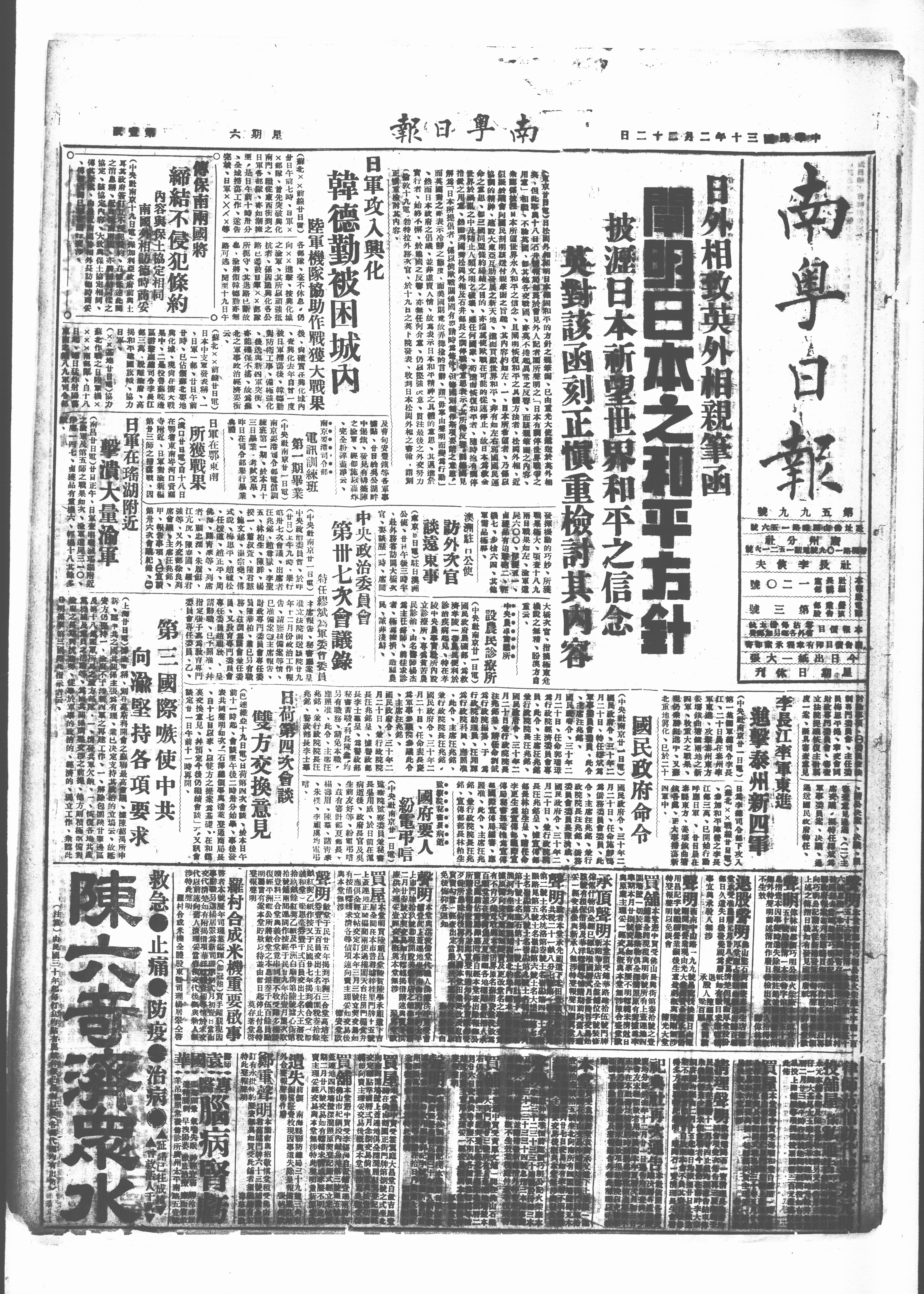 彭日本之和平方针