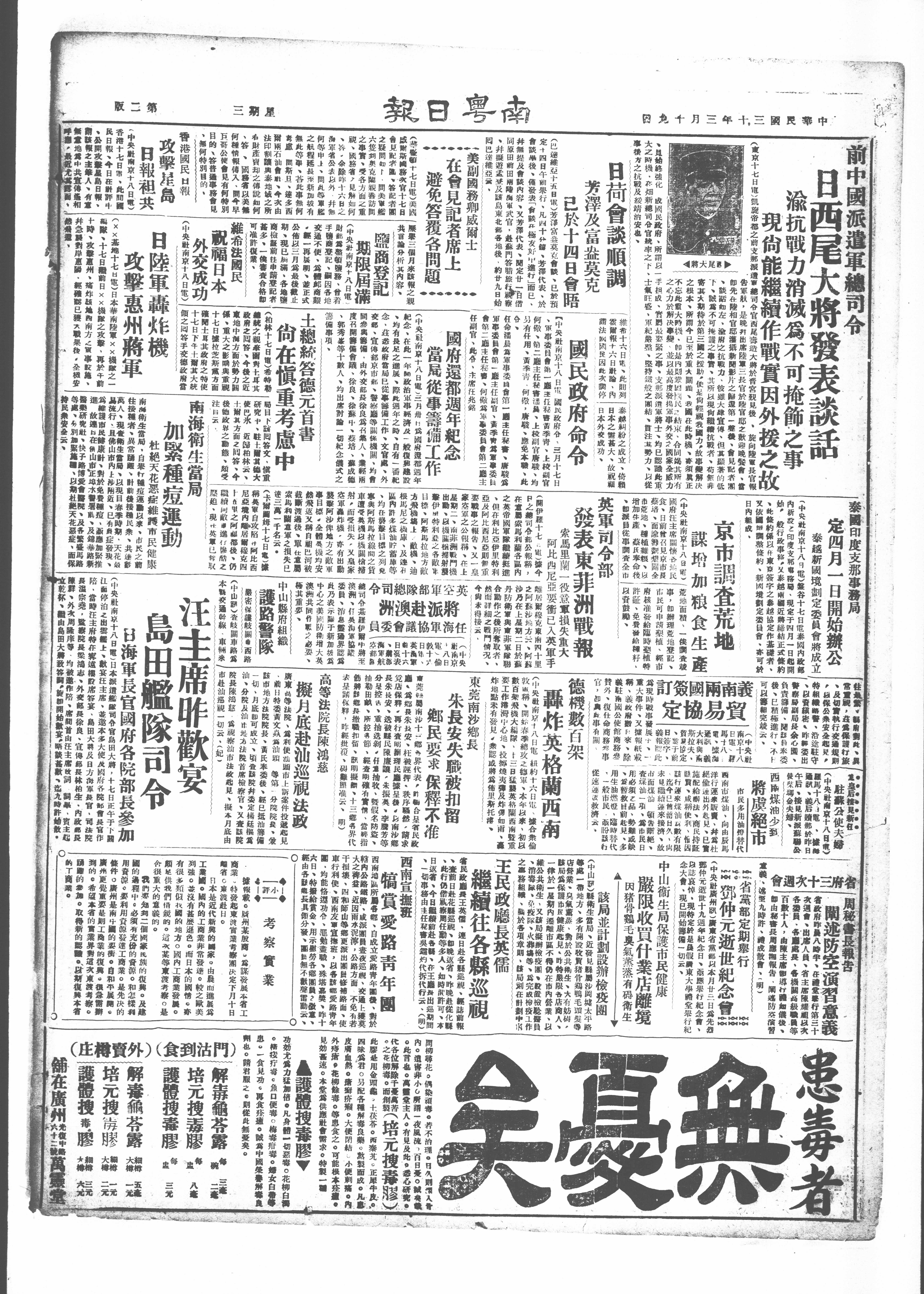 (中央肚南京十八日笔)日本派家司合官島田大将,十七日正午于下
