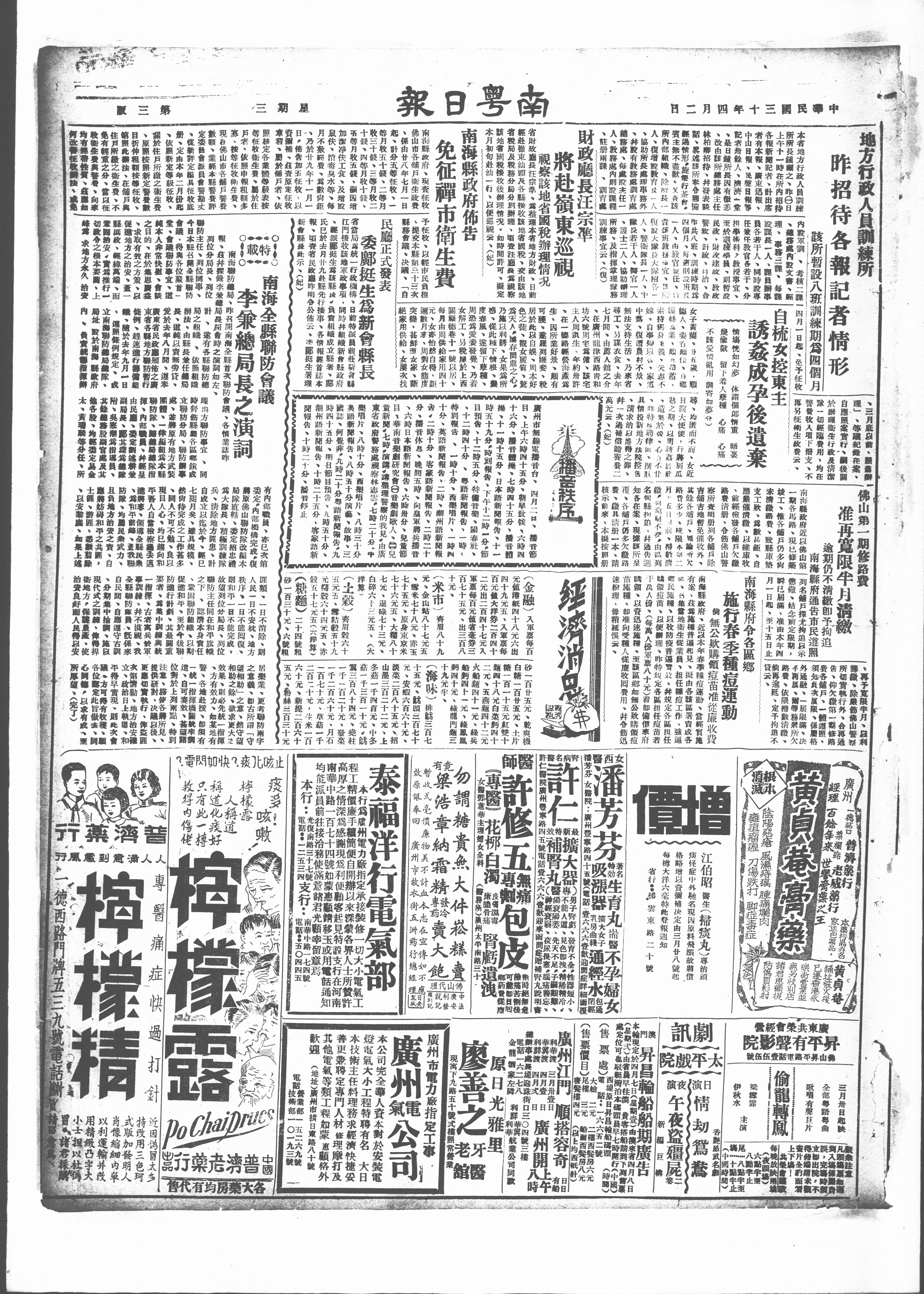 本省地方行政人具訓棘一内股軍、考核二一一四月一日起、免予征收