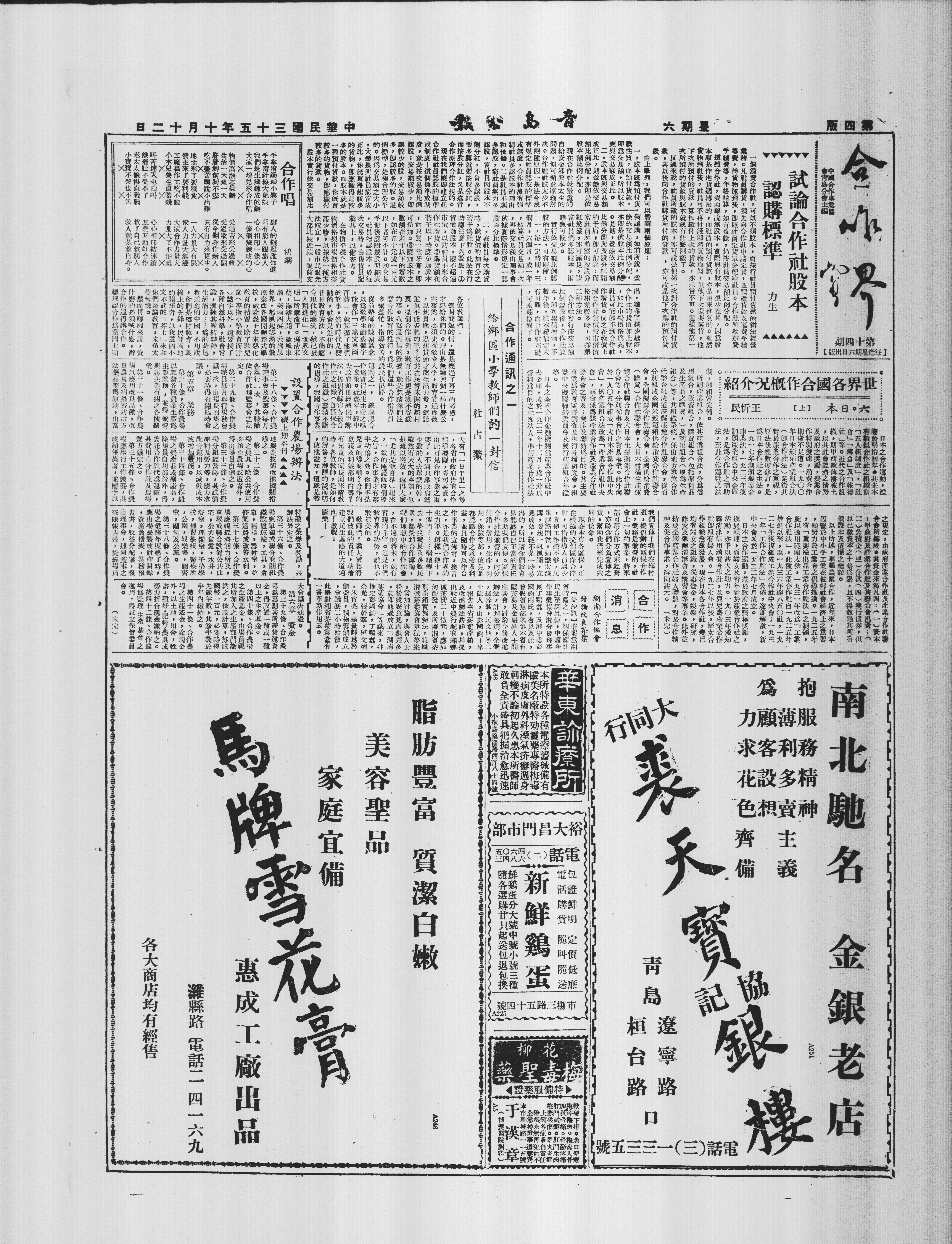 第三十六条 合作农场应视经济能力所及,单独或联合设置公共住宅、公共食堂、水井、浴室、理发室、子弟学校、补习学校、医疗所、公园、娱乐场、图书室、公墓等公共设施。