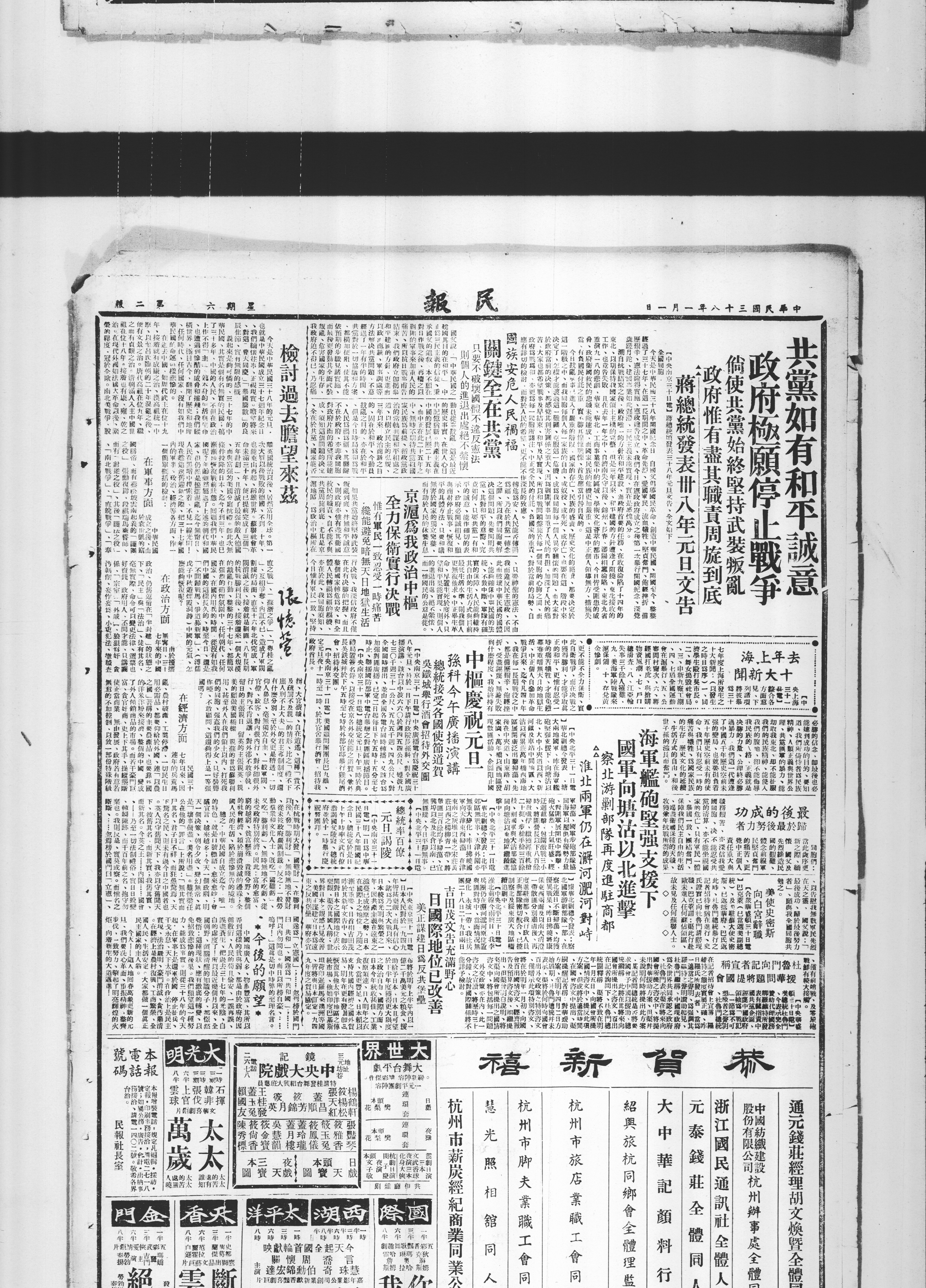 共党如有和平诚意政府极愿停止战争
