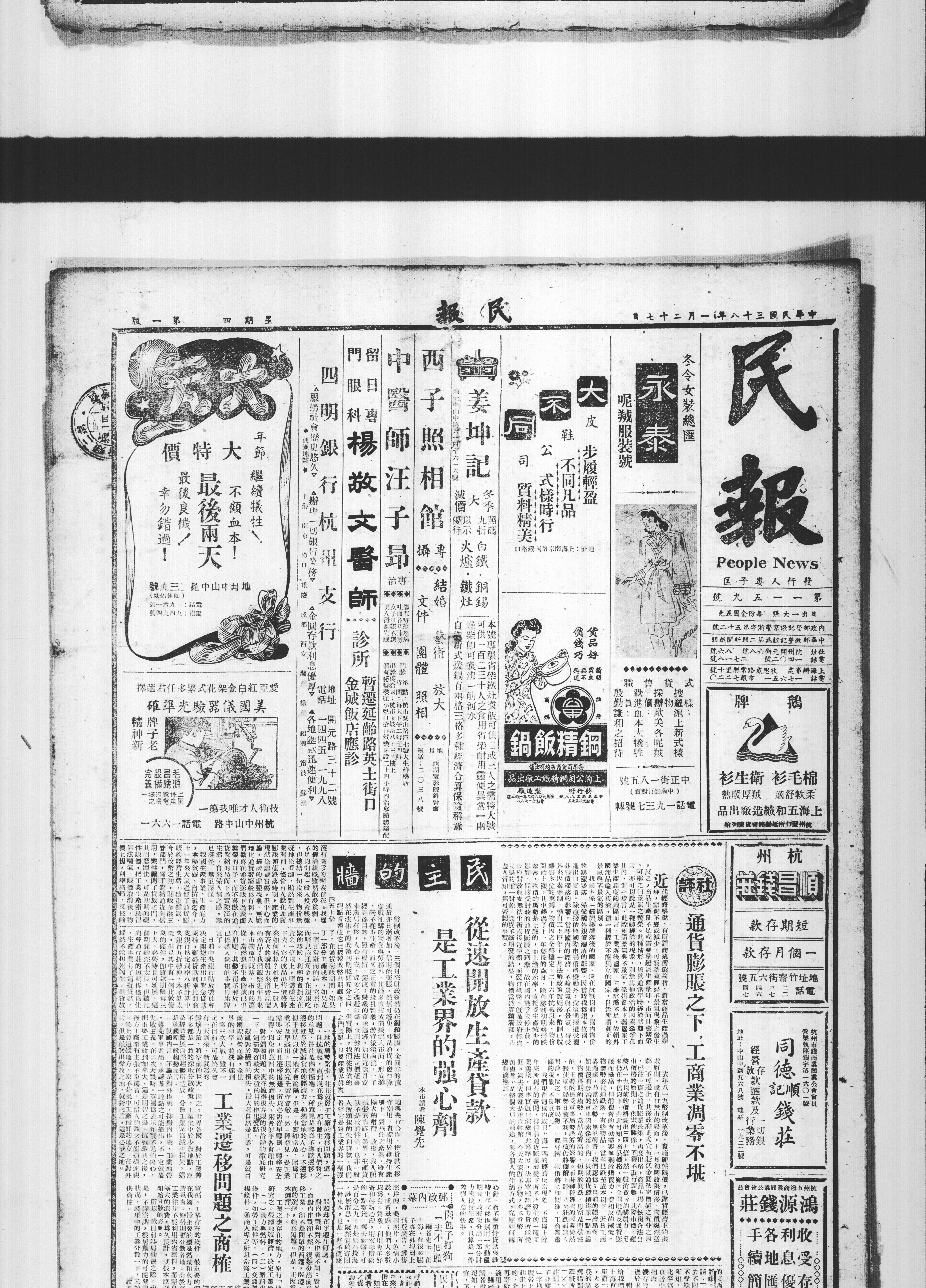 在通货虚胀期间,如果没有战争因素存在,一个正常厂商照市面高息流通资金,在银根吃紧时,利率的负担远在资金一倍以上。如此生产下去,成品出售价格将来如何核算?社会上有若大的购买力来消费高价的商品?观察近半月来本市物价的疲落、市面的萧条,生产贷款已迫在眉睫,其势不得不解放,这已是尽人皆知的事实。