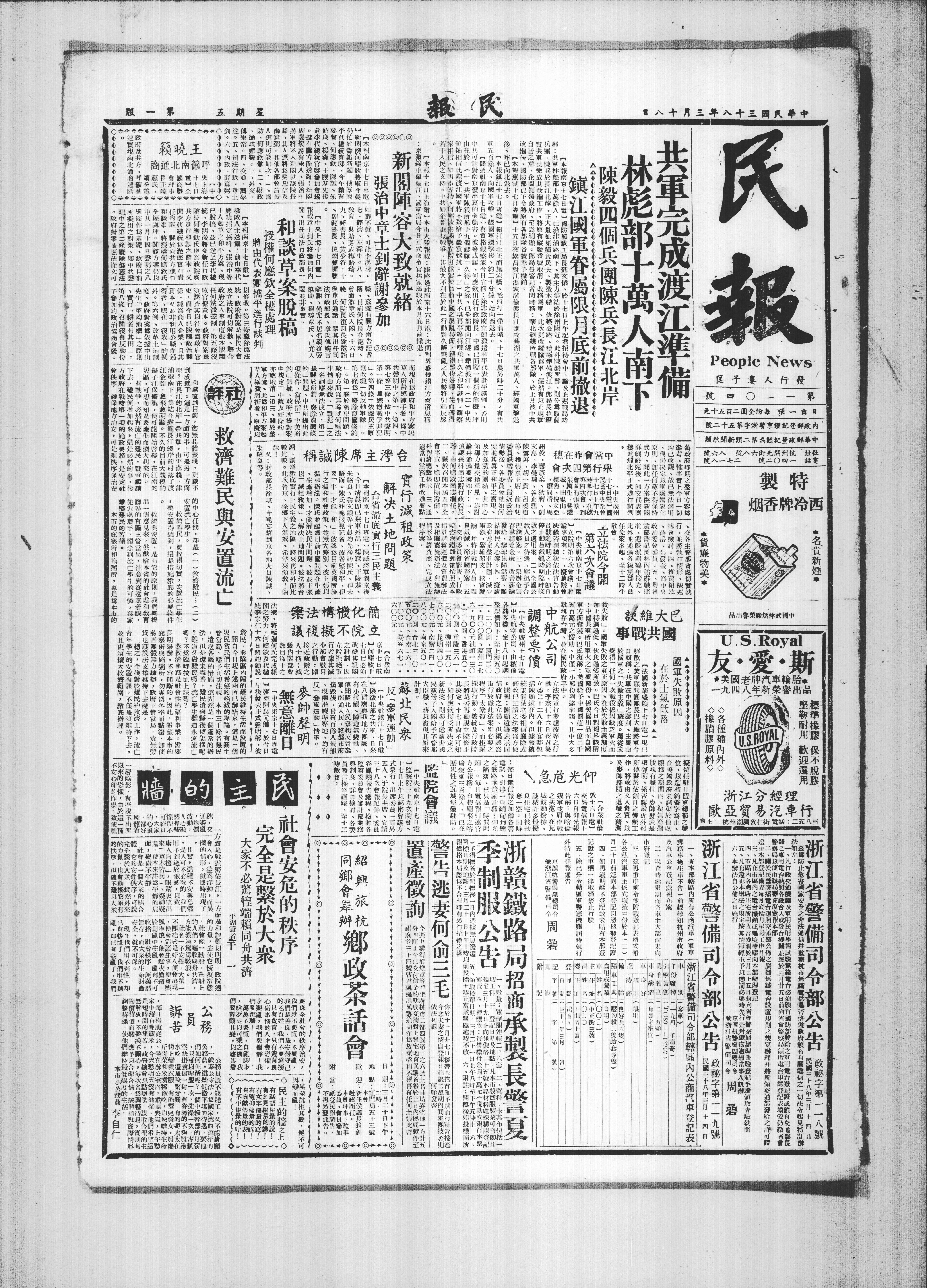 社会安危的秩序完全是系于大众 大家不必惊惶 端赖同舟共济