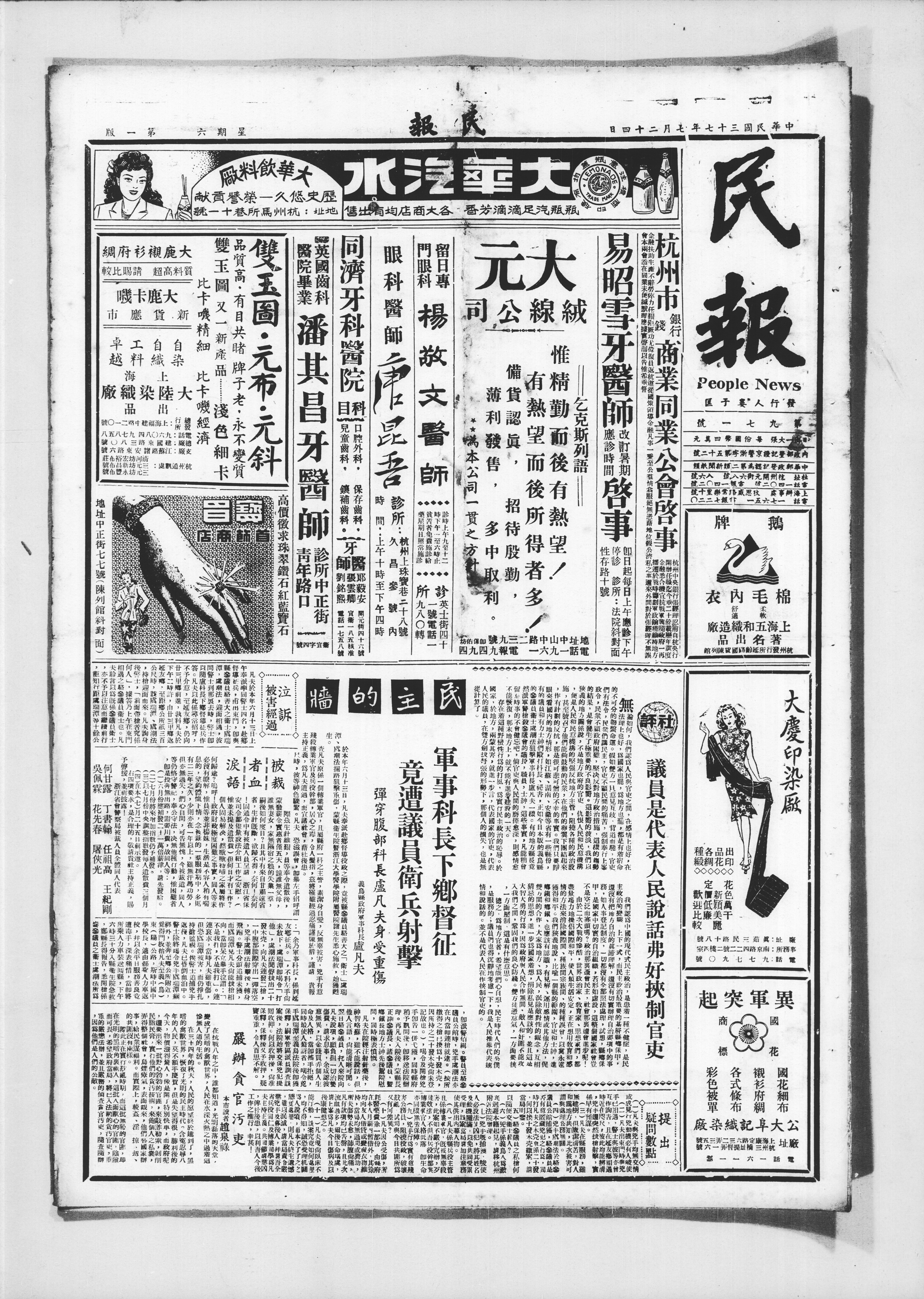 无论如何,我们认识人民兴奋之地,不在乎感情上也好,在政治问题上也好,谋国为人民与官吏之间建立充分沟通,假如双方意见不协,背道而进,官吏有接受批评改进政务的义务,若官吏不明民众痛苦,固执己见,而民众不理解政府困难,坚决反对地方政治措施,这样对立的局势结果,是会损害政治而要产生不良影响。这仇恨的波浪,我们以强实的地方情形说,不是地方政府官吏仇恨人民和民意机关,便是人民和民意机关的坚强反抗地方主管,阻挡各种政治施政,甚至号召了他们所能动员的民众,在他们的众意下团结起来,有计划地反抗,那是很可悲可憎的不幸。我们只要放眼来看国内地方情形,如江苏、湖南、安徽等省有一些县份,双方的仇视与纠纷正如今天本版所述的某地参议员与县长冲突一例。有的地方县长竟派军警杀害参议会请愿的民众,这些事实,凡能稍关心时事的不会健忘吧。若官民间的隔阂愈深,则感情愈坏,不能恢复,那末地方上就不能有进步有效的一天。