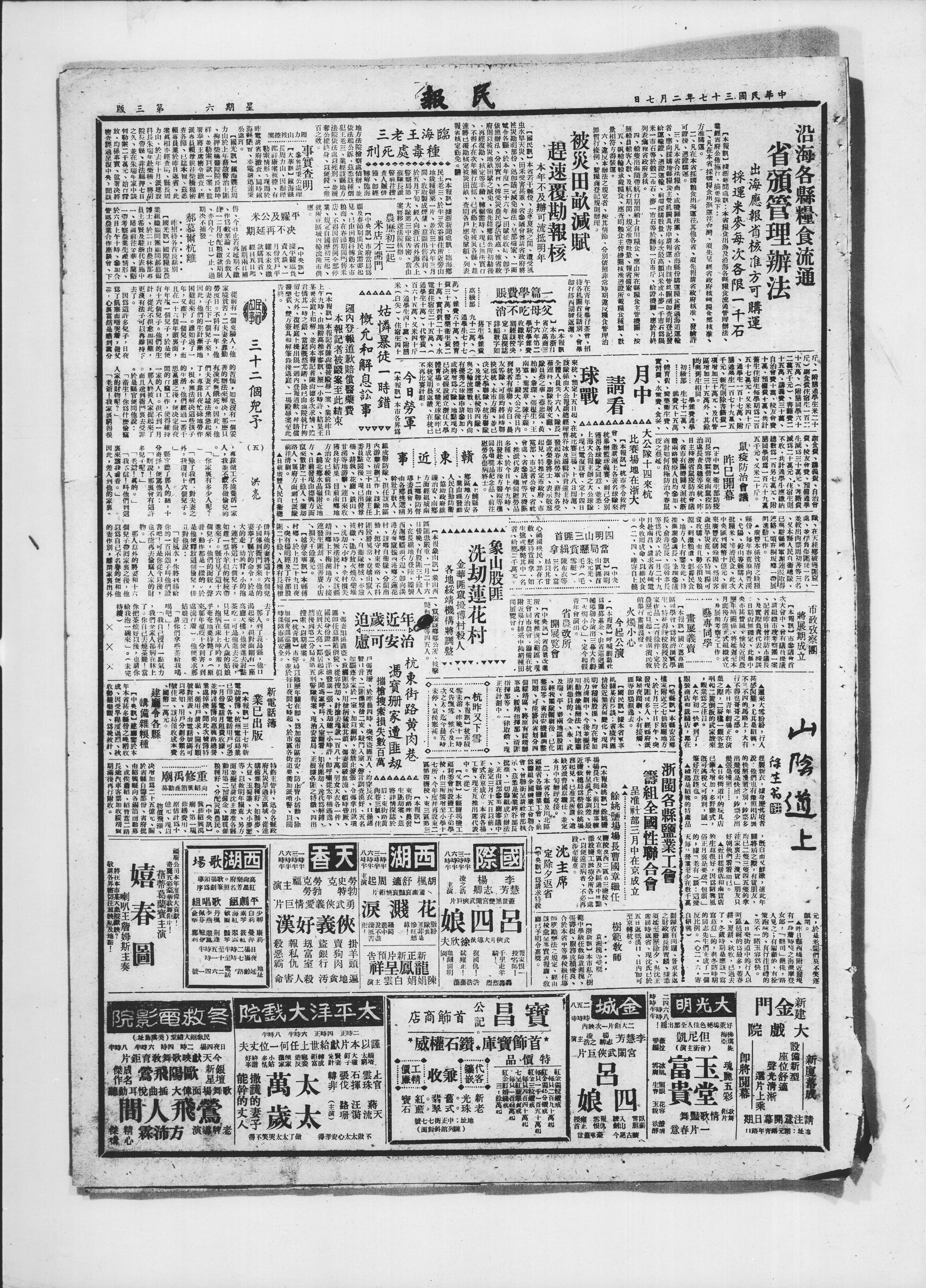 【本报讯】据浙新闻处训:本省粮食出海及沿海各县粮食流通管理办法