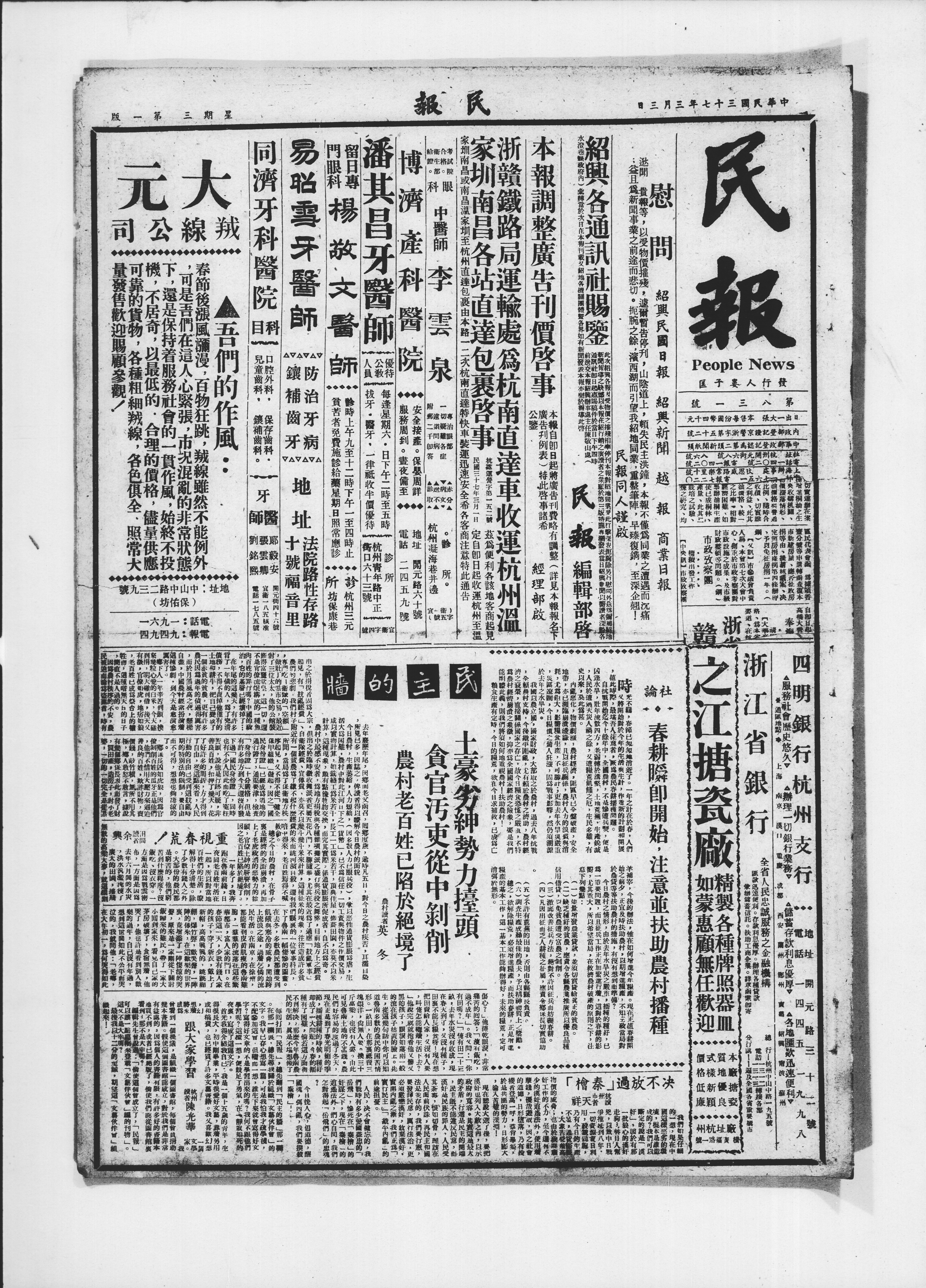 论社X春耕瞬即开始,注意业扶助农村播种