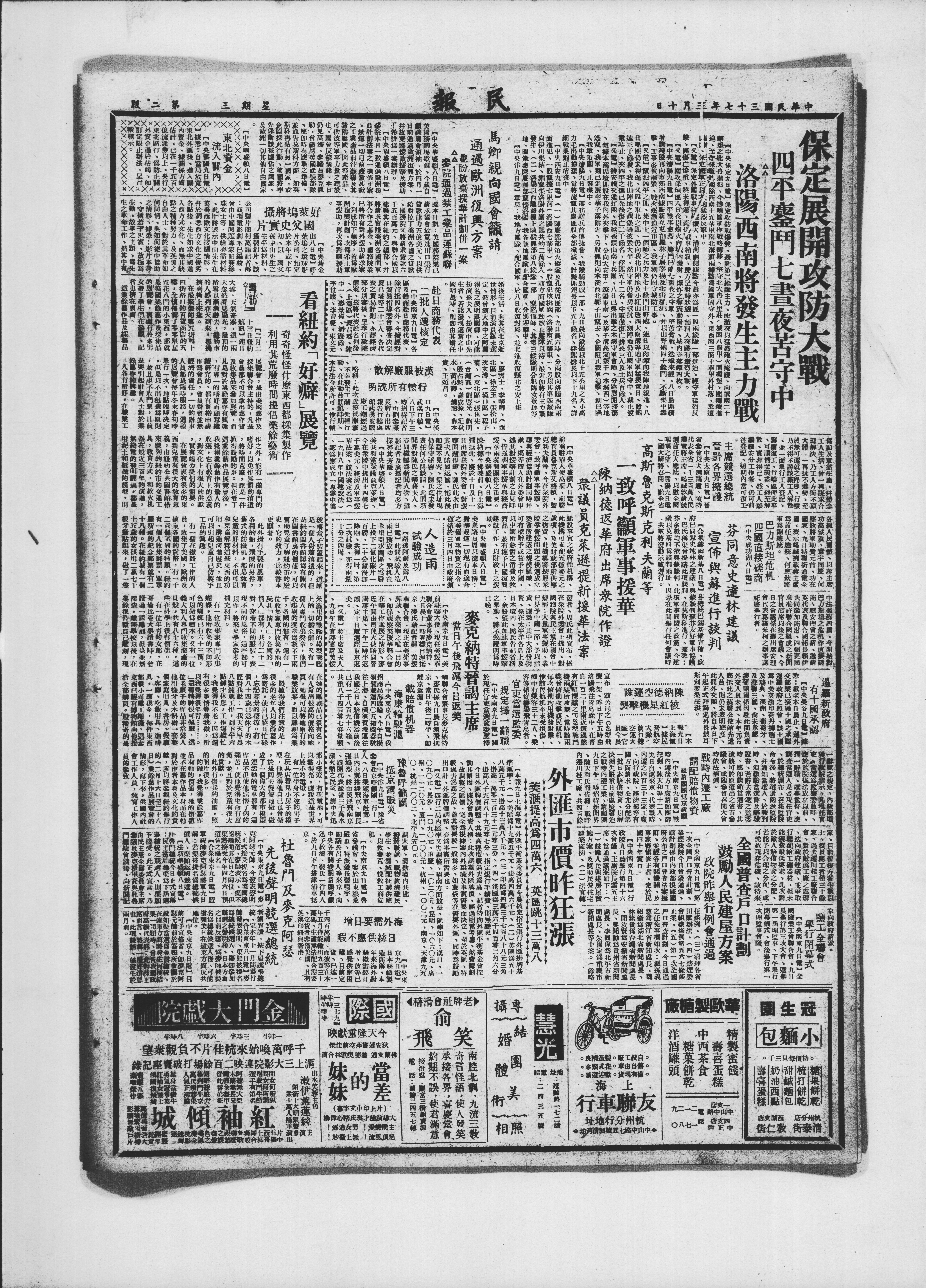 【又电】保定外围战事益书大、漕河两侧谋点今晨亦爲匪一四两纵除一部进迫、经守军猛烈反