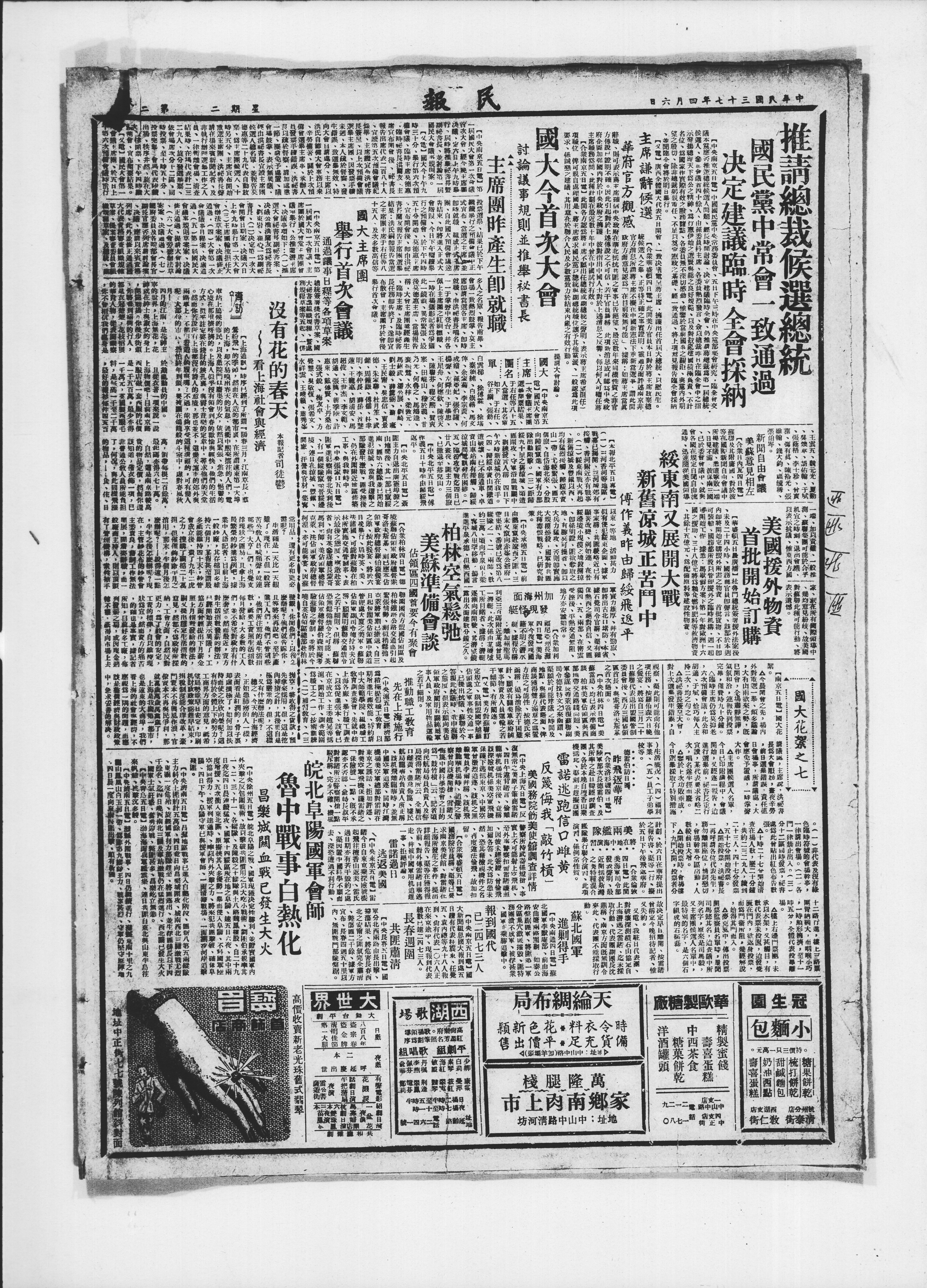 國之援助、三十八億元将粮食燃料肥料等救濟物资