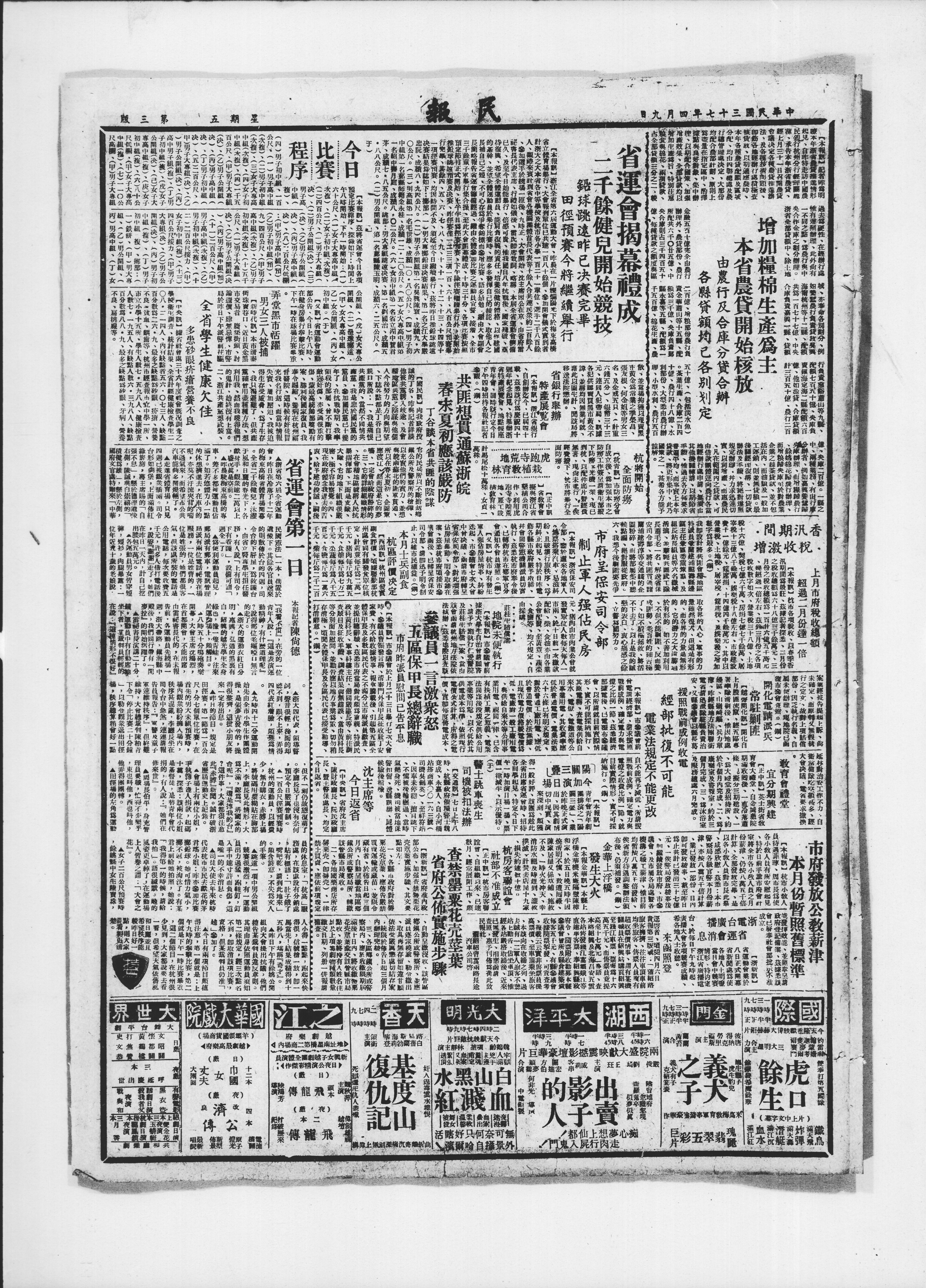 税收数字如次、营业税三十八亿、土地