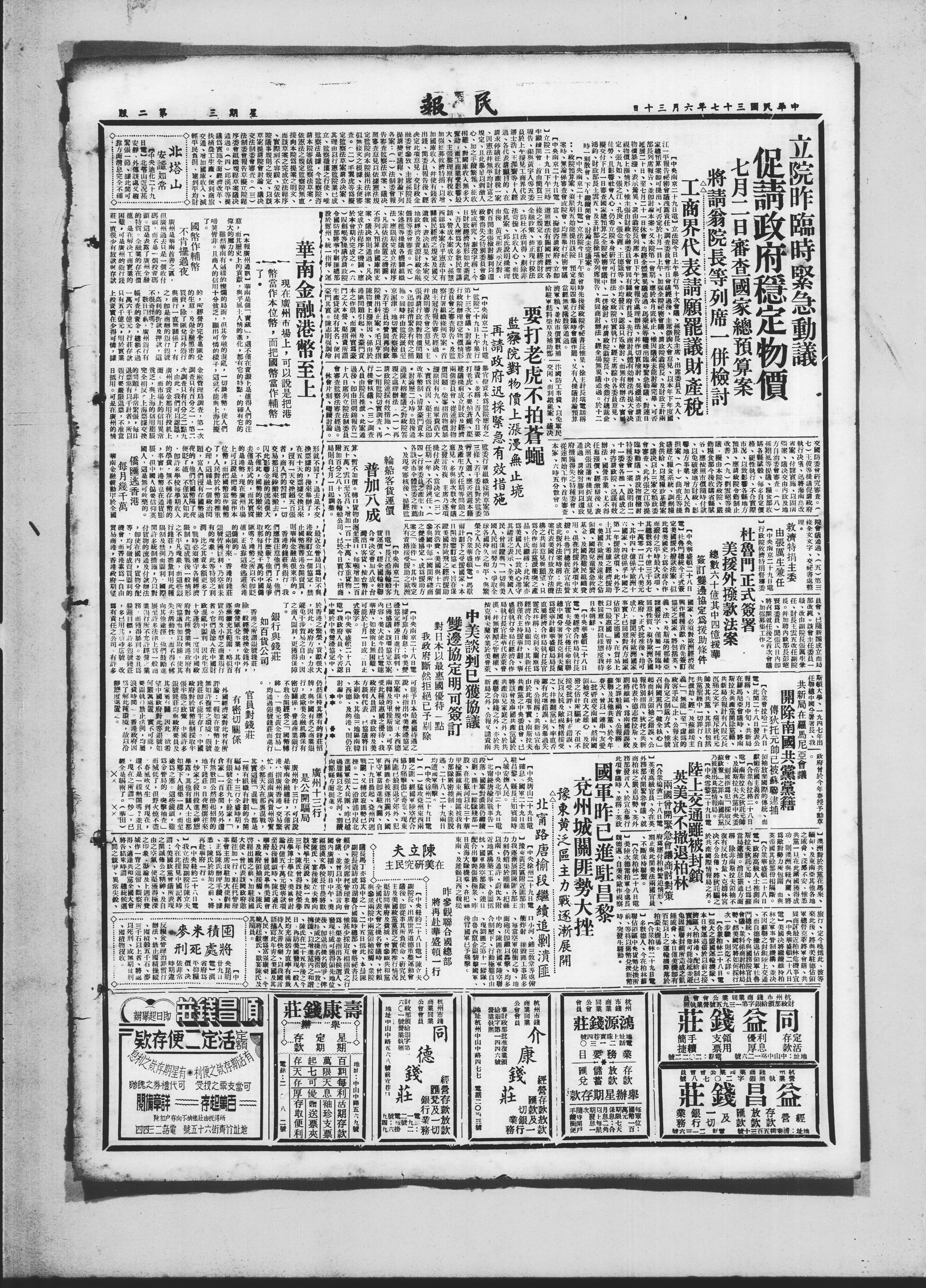 中央华盛(二十八日X西德、及的港、则仍在