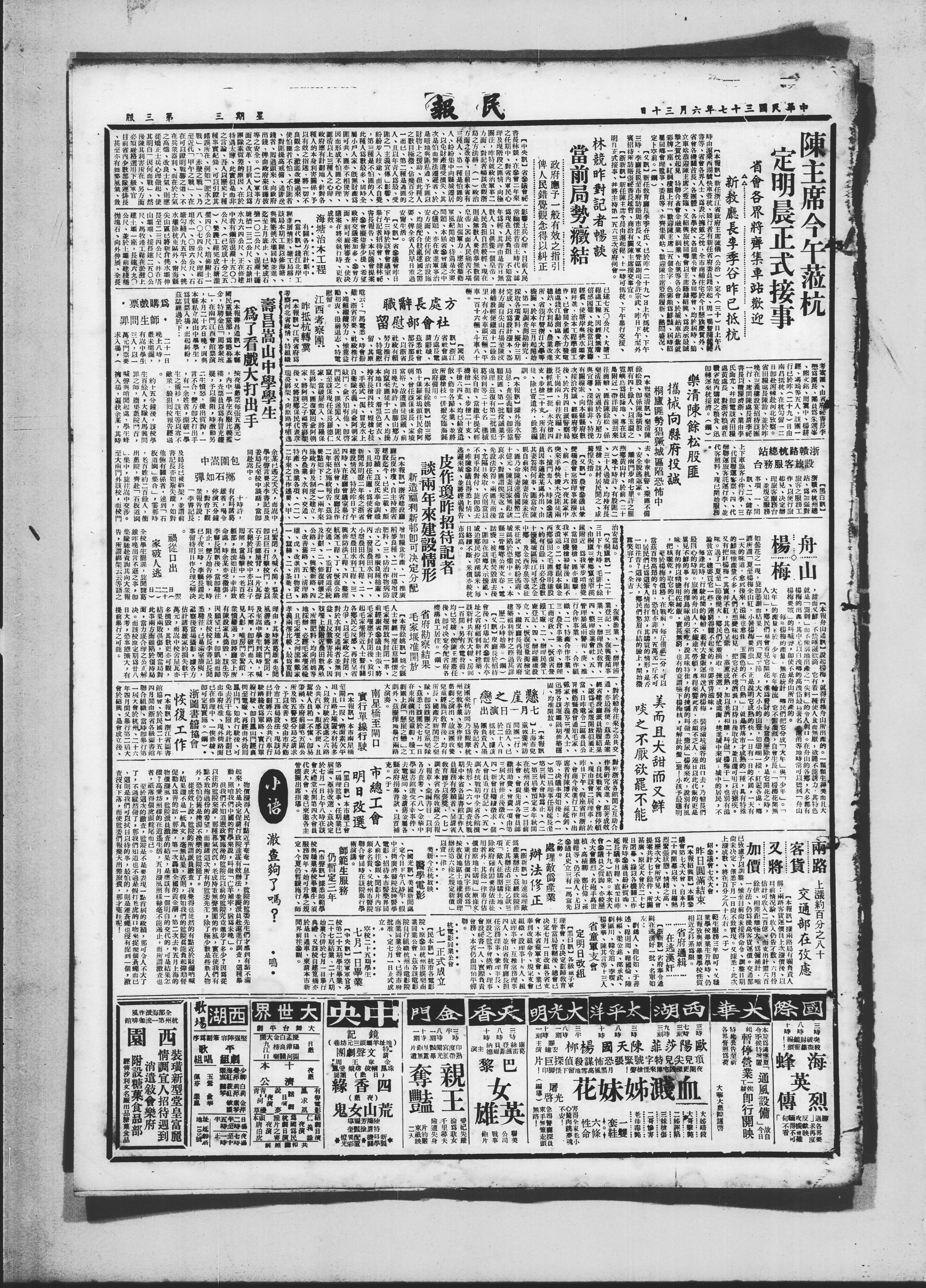 【本报寿昌通】本县X按夜扬票每张五万元)