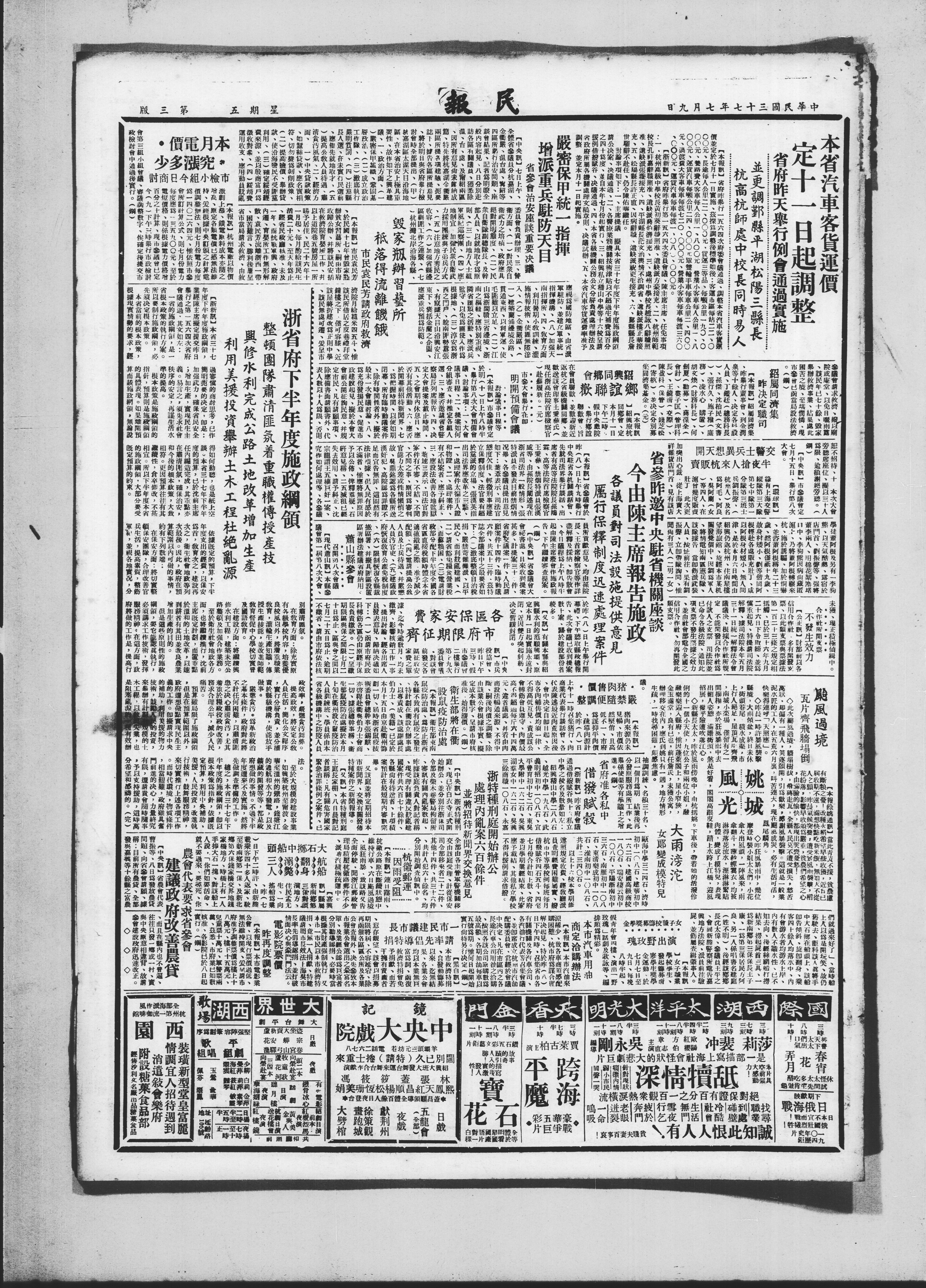 全体省参议岚分杭嘉湖X方面、(一)对民米自