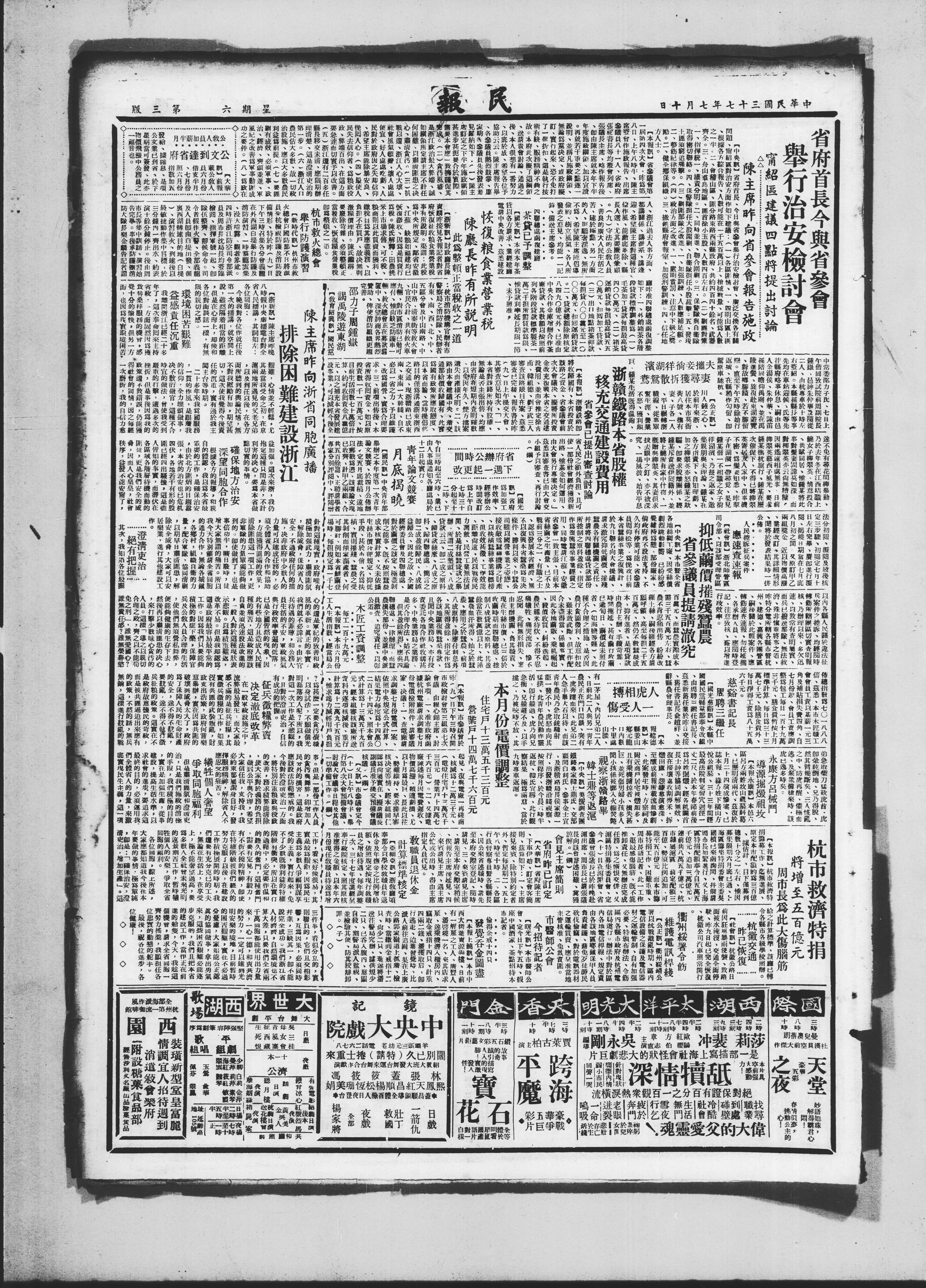 【本报】本市六月份