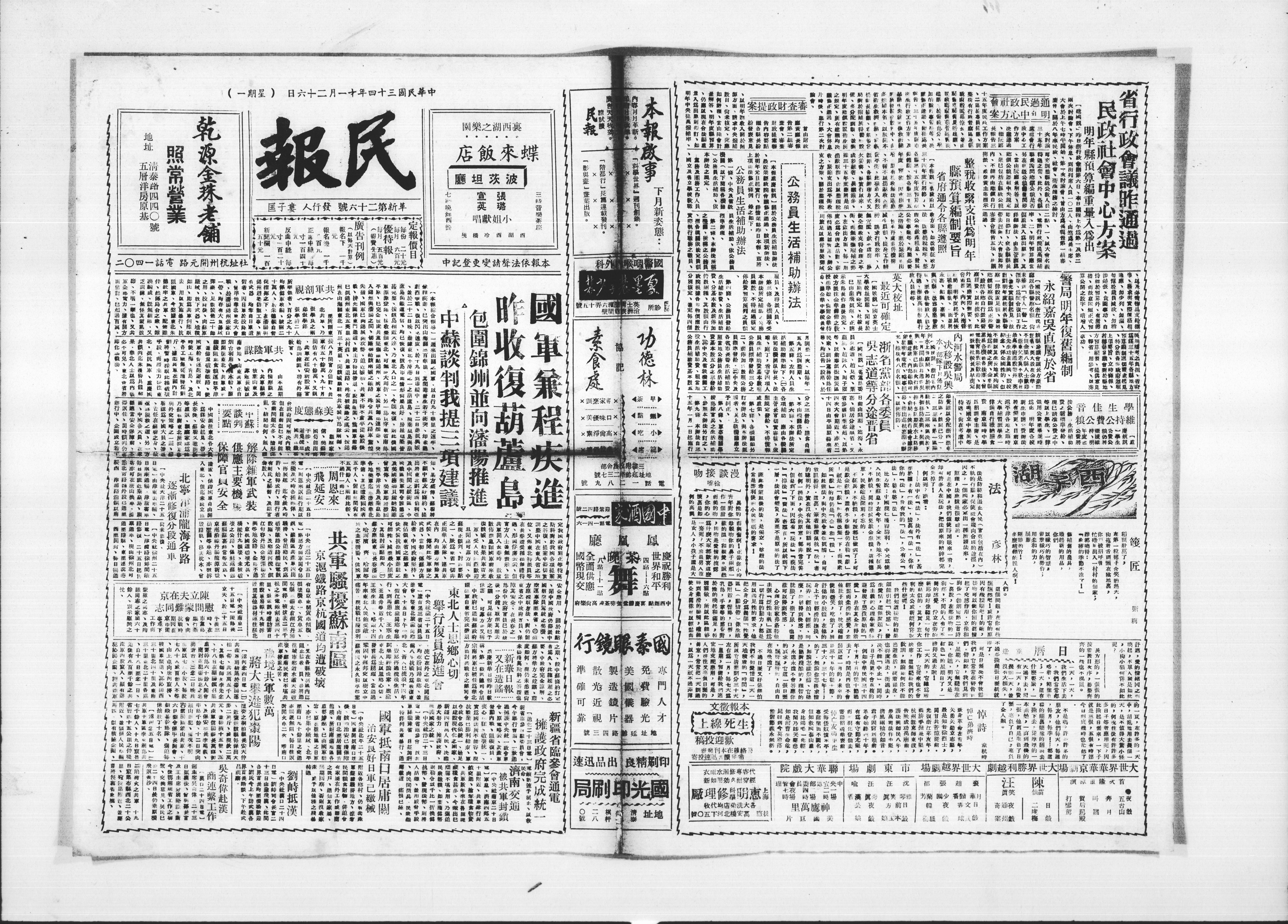 `於二十二日晚、雅據東北个港一之葫岛、現秦岛葫及中间之街品、中