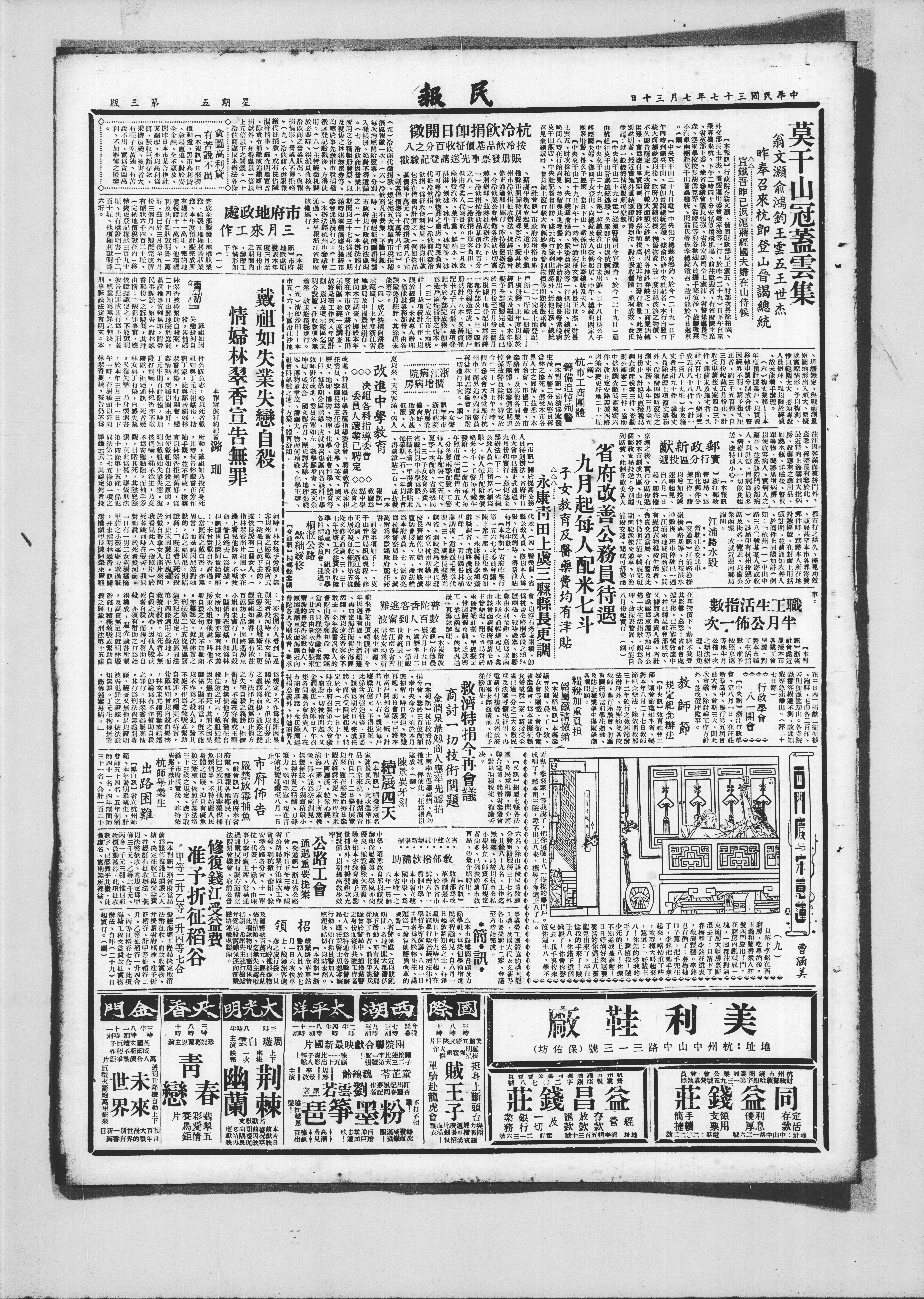 【本报讯】杭州市政府为适应实际需要,藉谋平衡收支起见,遵照中央颁布县市开辟特别税课法,拟具杭州市冷饮税征收办法,提请市参会修正通过,即日施行。昨特检附办法,令冷饮业公会转饬各冷饮店切实遵照办理。兹将征收办法照录如下: