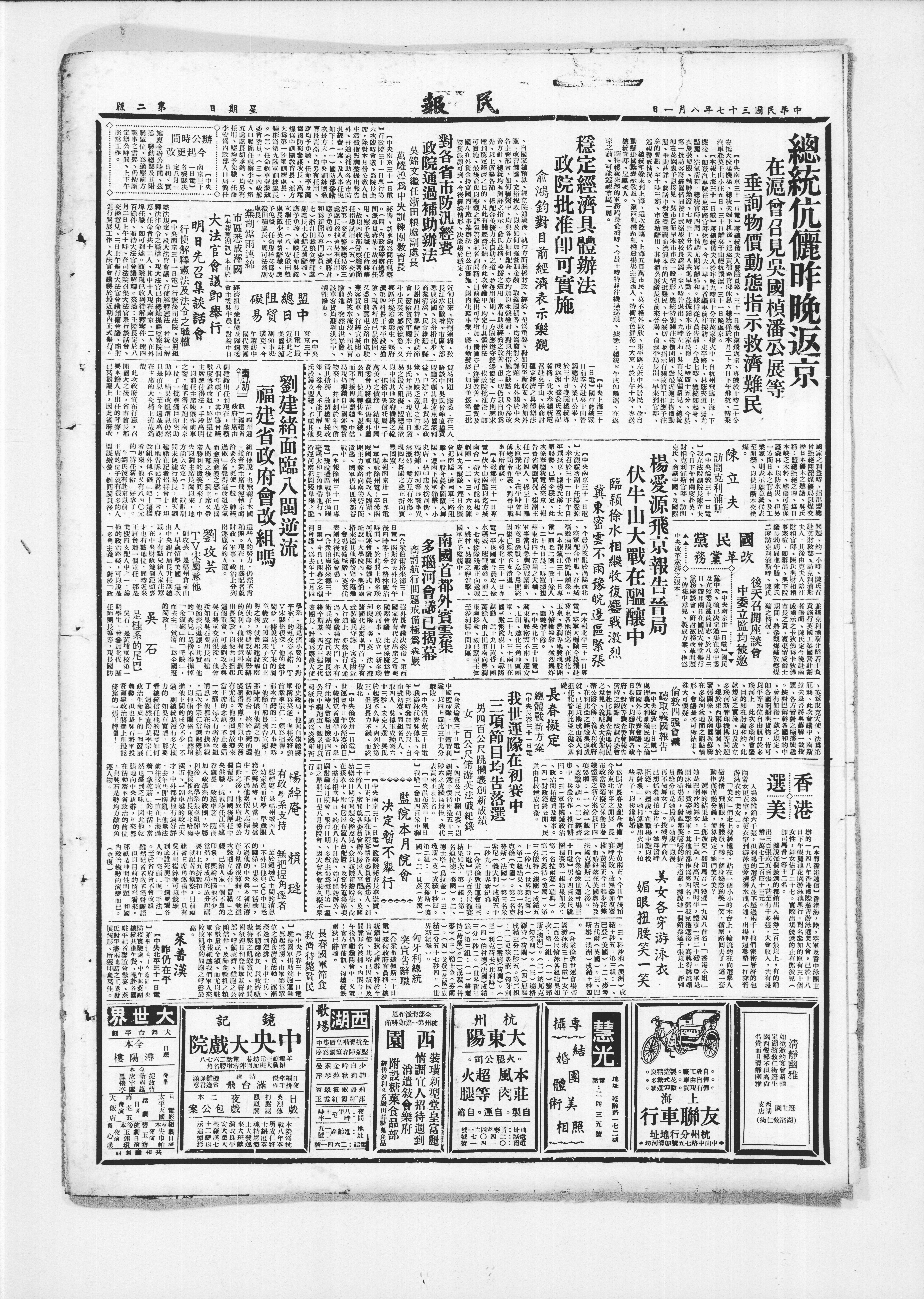 据传,也飞满了本省组的传说,接省主席飞抵南京洽公,更使一般“神经过敏”者觉得这改组空气愈演愈浓之感。可是国大闭幕之后,刘主席又带着胜利的微笑回来了,中央以刘主席长期以来,地方向来安定,对大局颇利,前天刘主席在记者招待会上,坦白地告诉记者说:“此虏(指刘建绪)不确!吧!这虏(指刘建绪)又有一八○○元的‘特任薪给’好拿了。”
