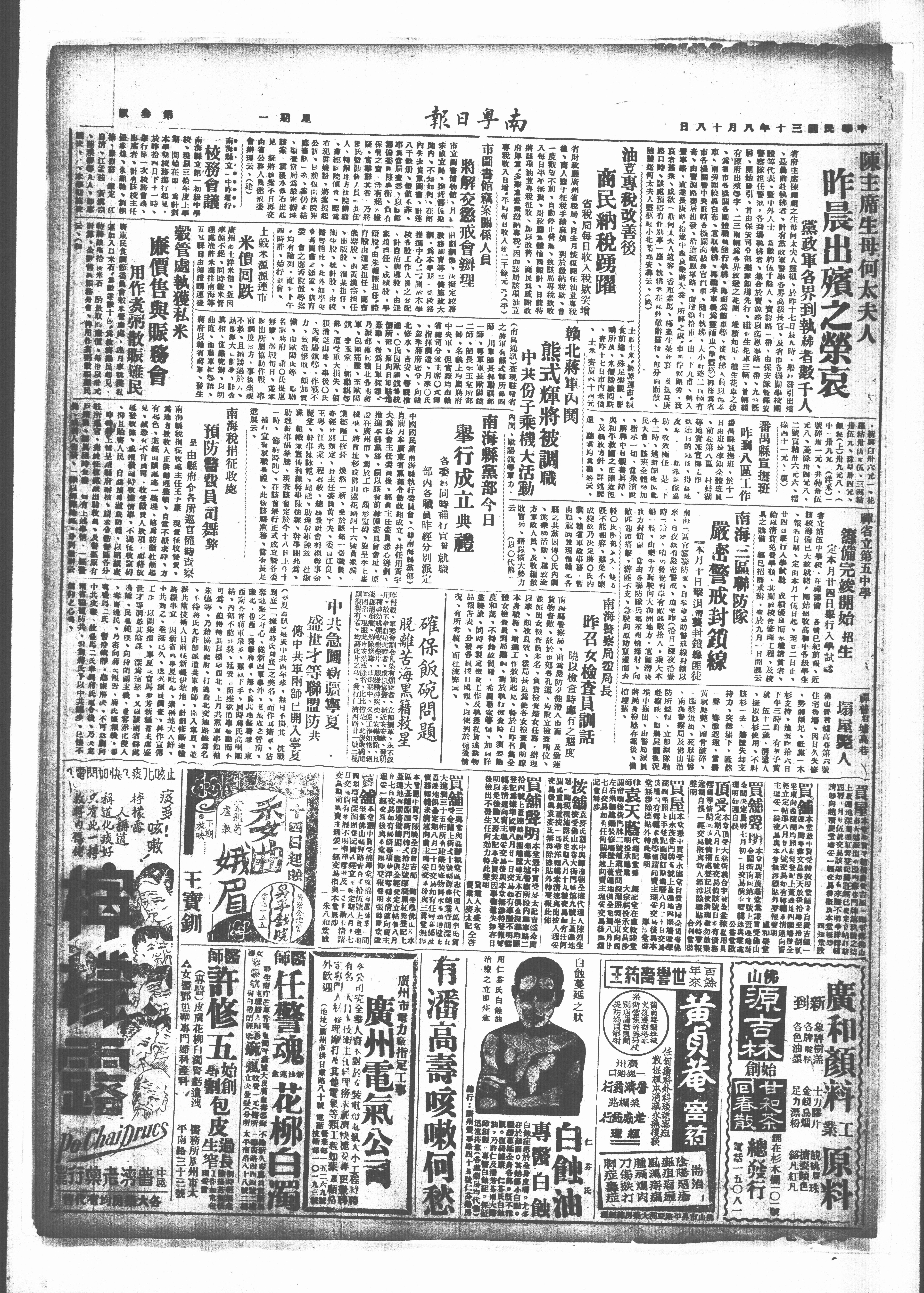 陳主席生母何太夫人 昨晨出殯之榮哀