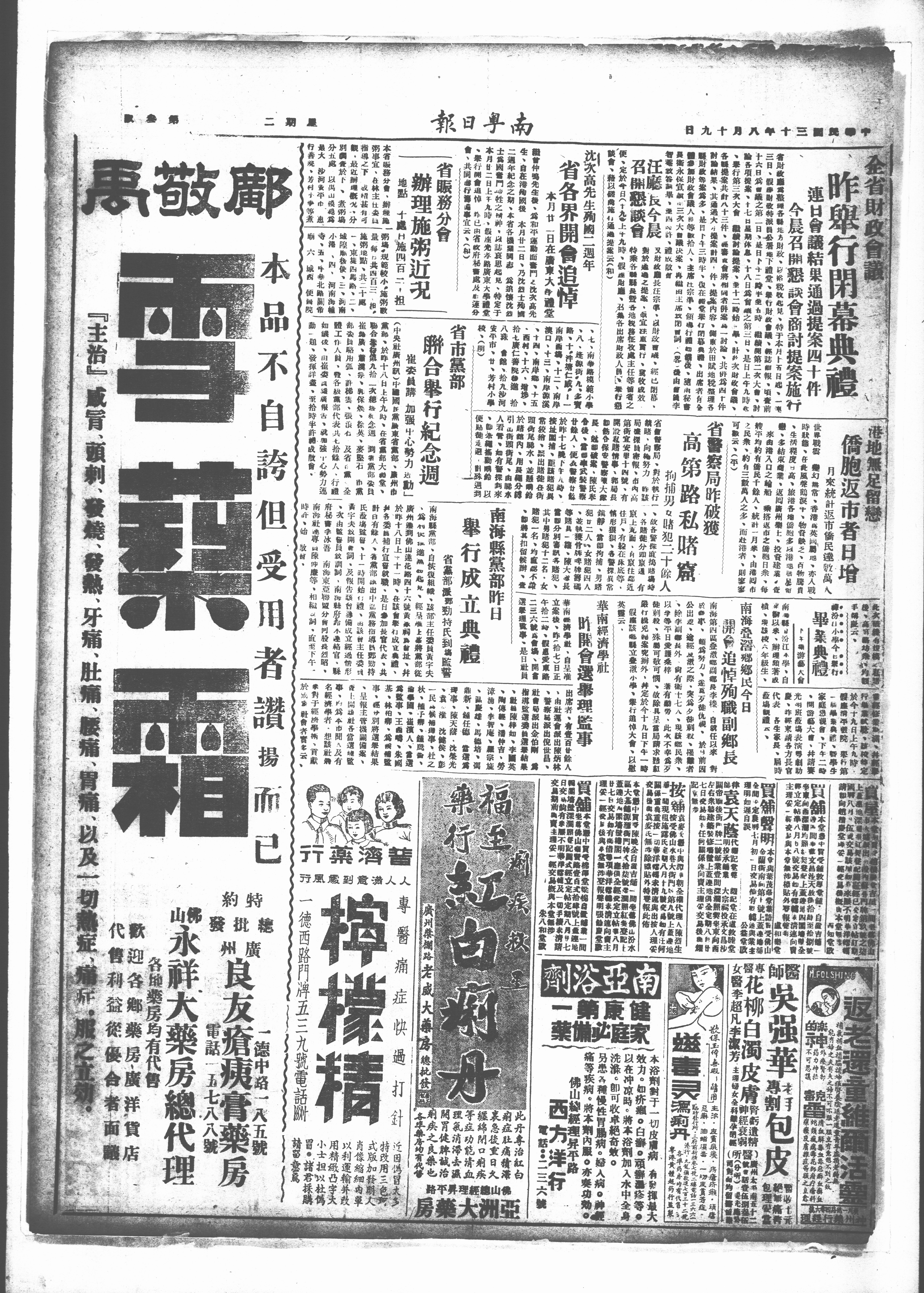 南海登滘鄉鄕民今日 開會追悼殉職副鄉長