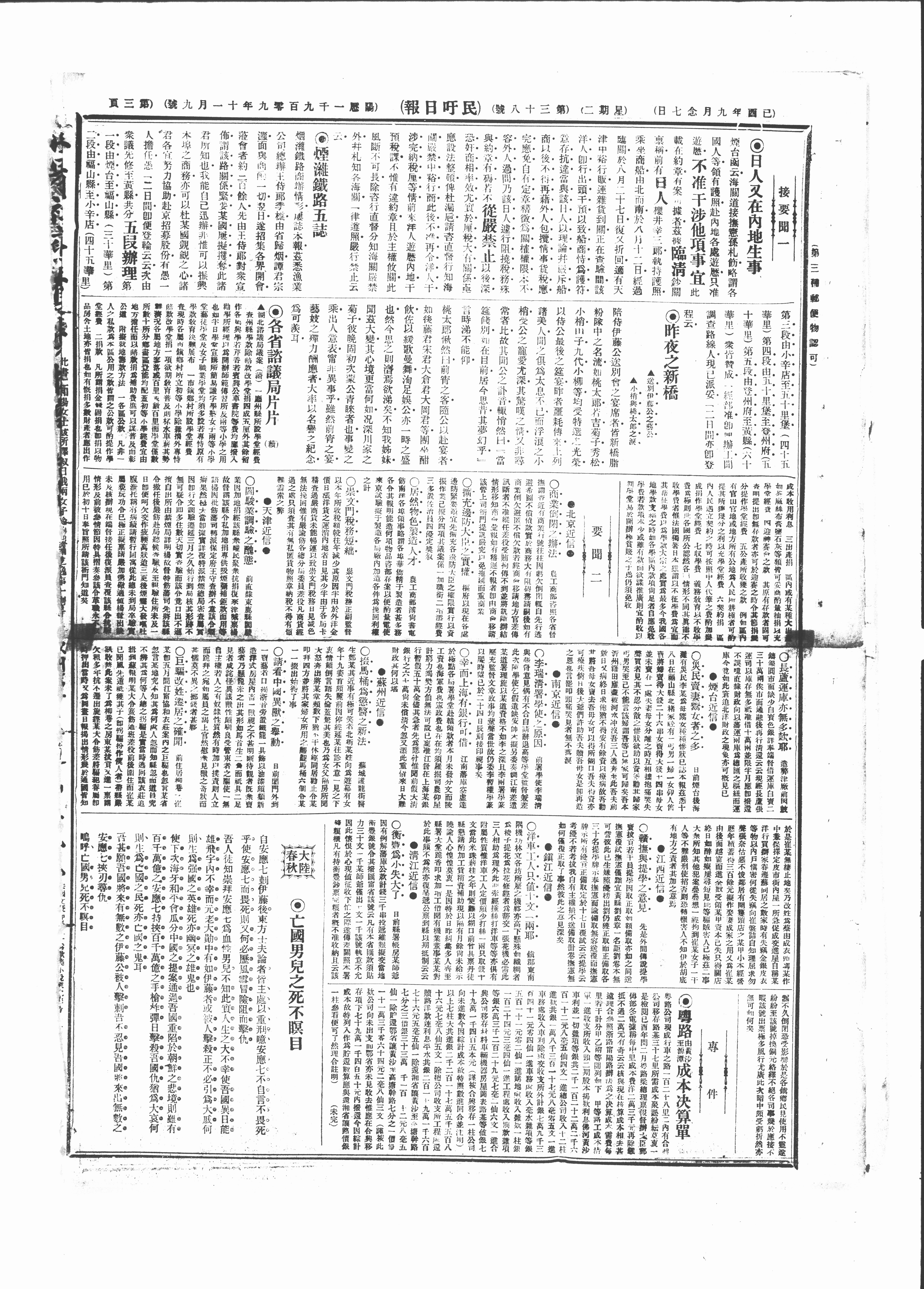 佈謂該路關係緊要某國屢擬攫奪此諸