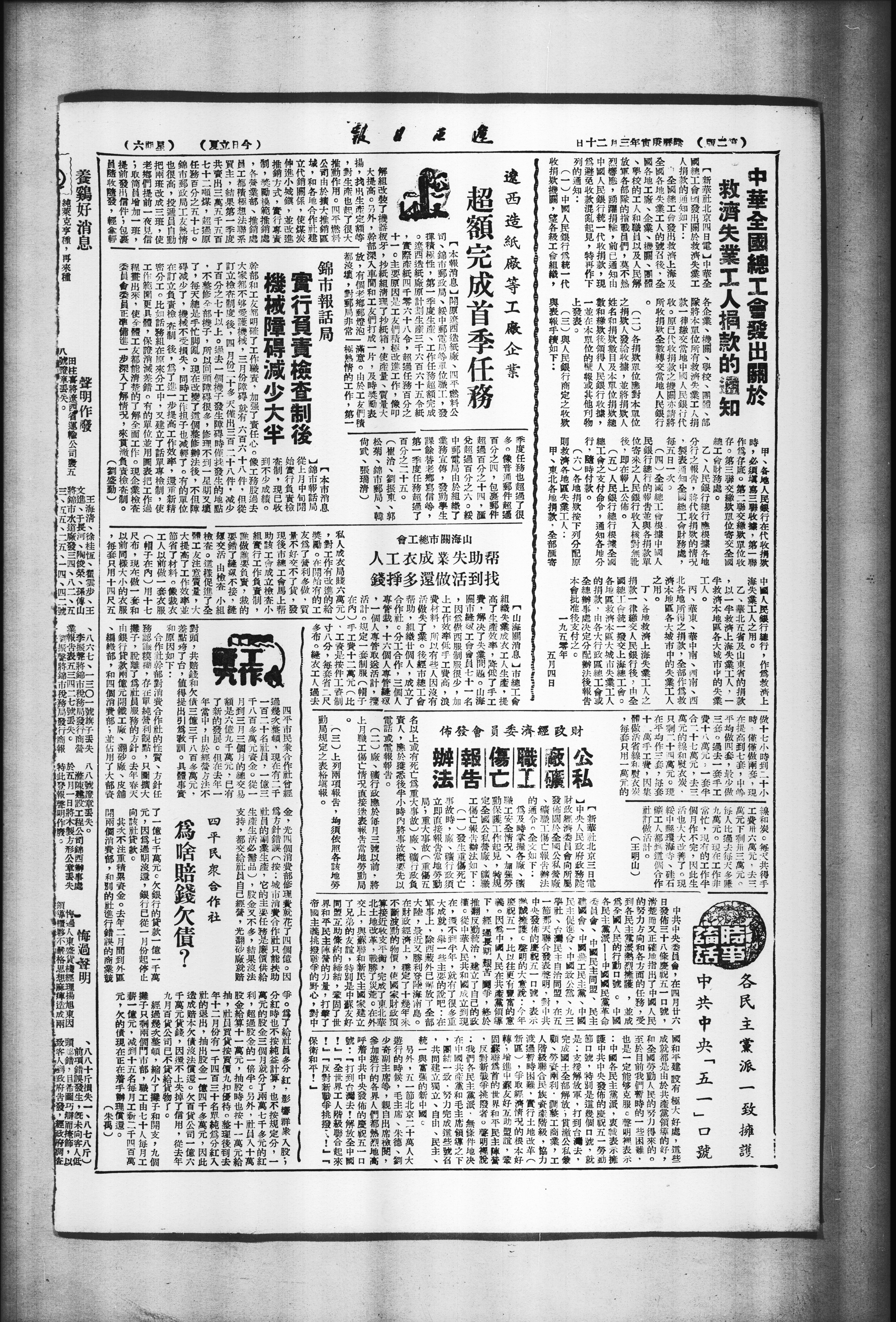 中华全国总工会发出关于救济失业工人捐款的通知